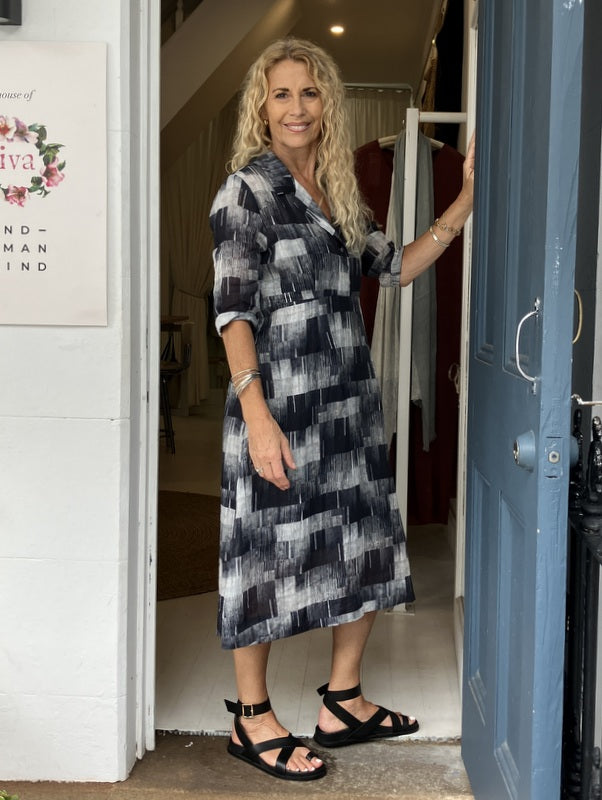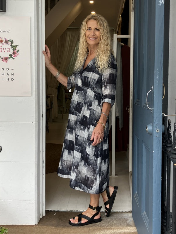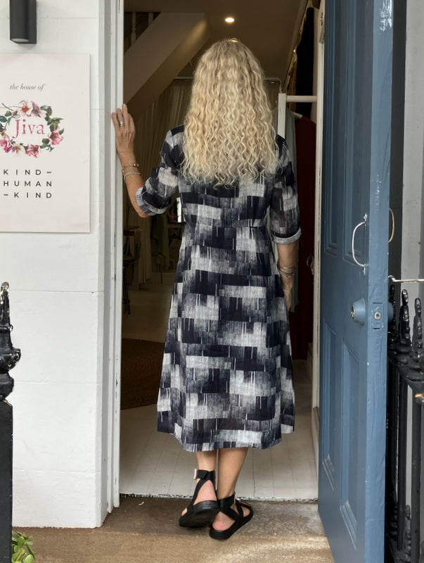 Jiva 50's Dress - Abstract Black/ White Print - Ramie