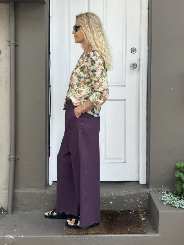 Jiva Mimi Pant (Regular) - Wide Legged Antique Wash Linen - Raisin