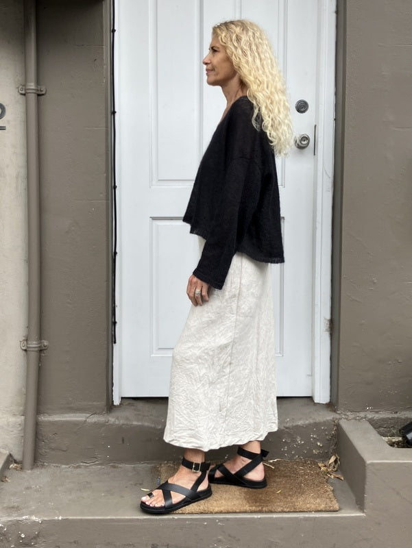 Luna Gallery Sheer MOHAIR Crop V Neck Sweater - Black