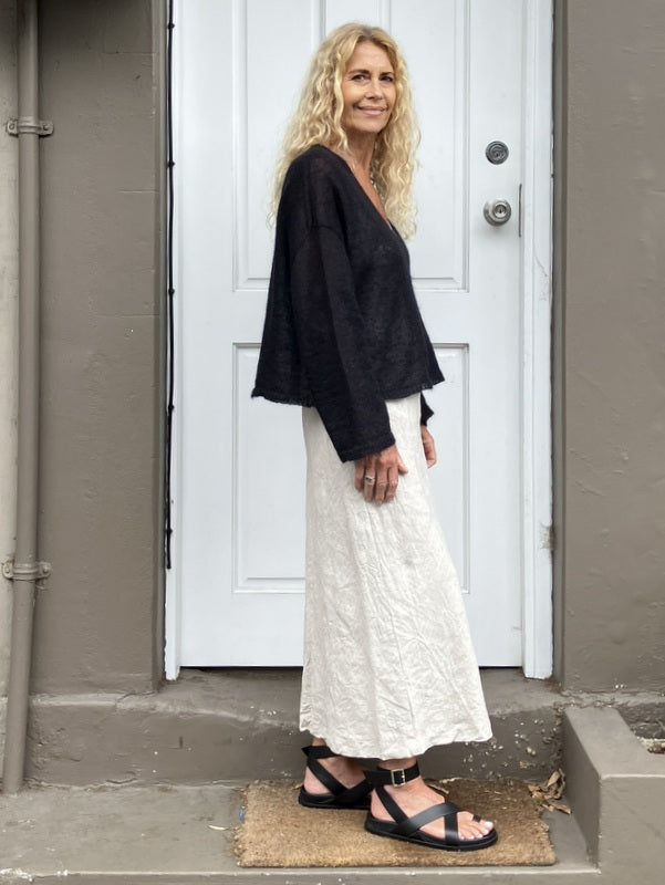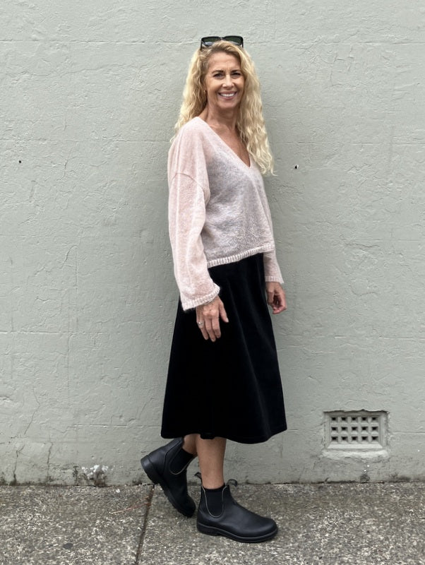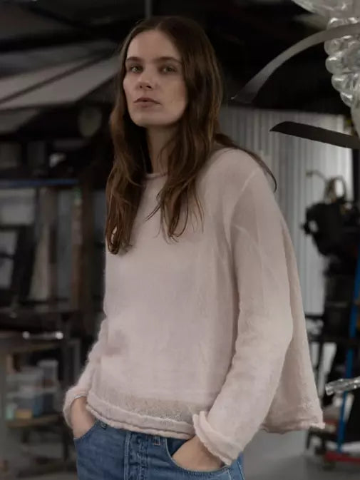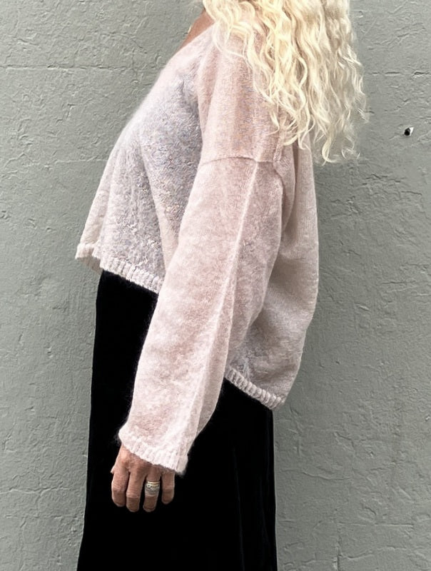 Luna Gallery Sheer MOHAIR Crop V Neck Sweater - Froth