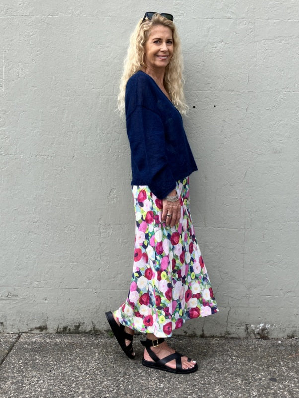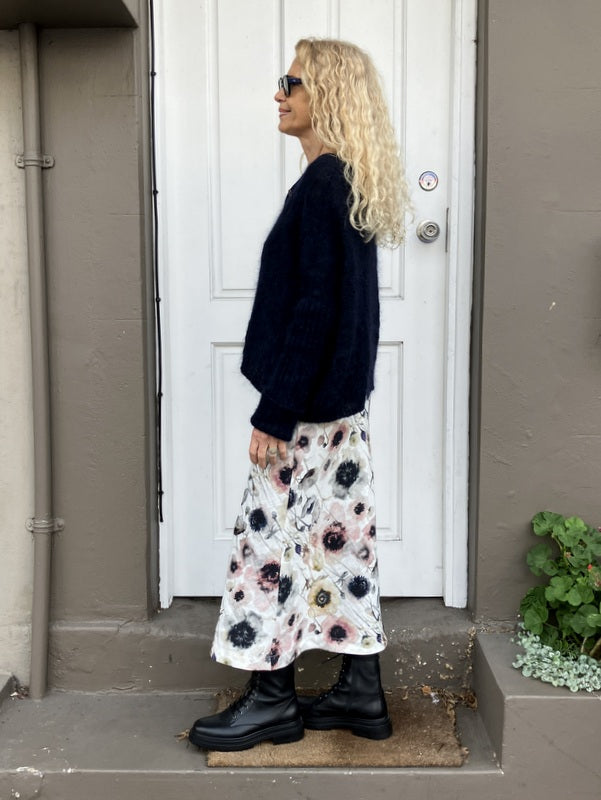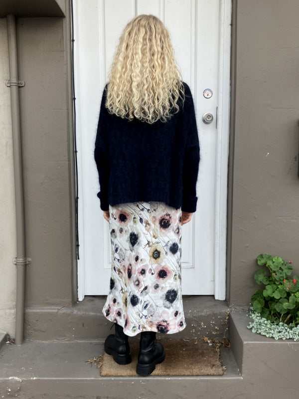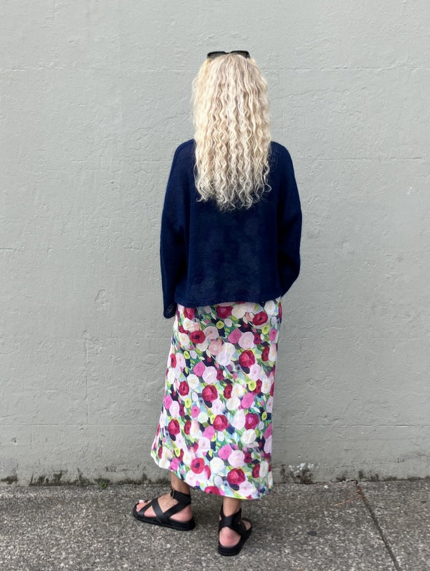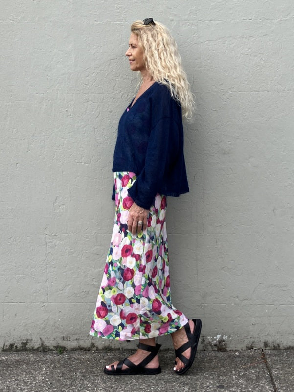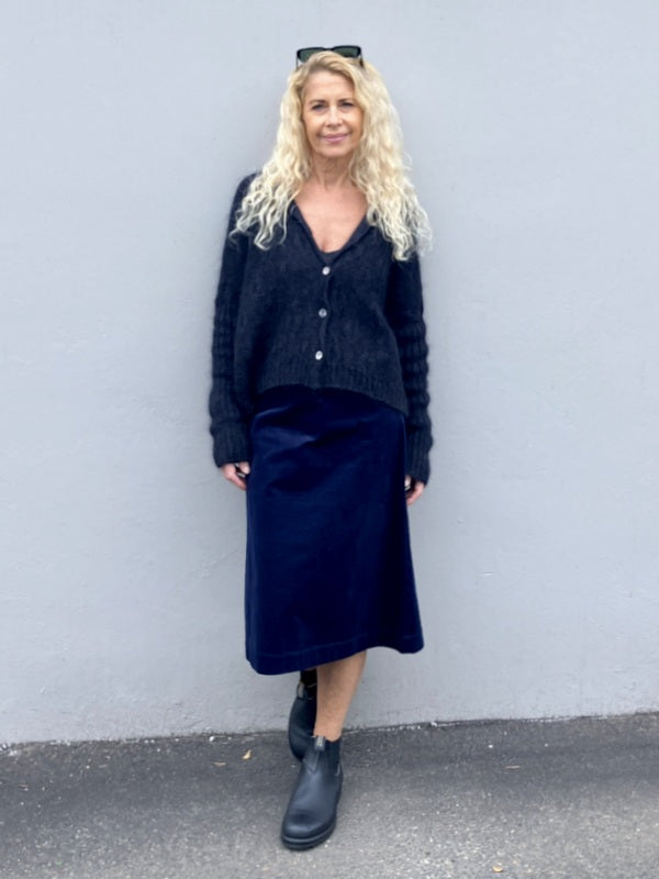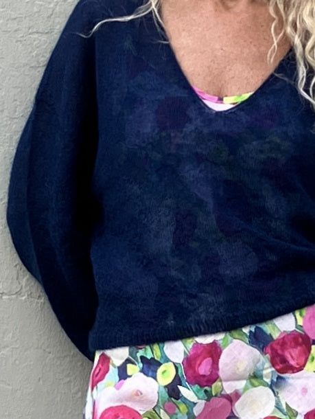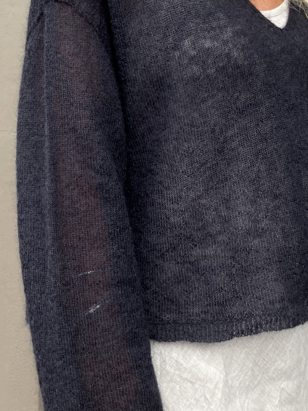 Luna Gallery Sheer MOHAIR Crop V Neck Sweater - Navy