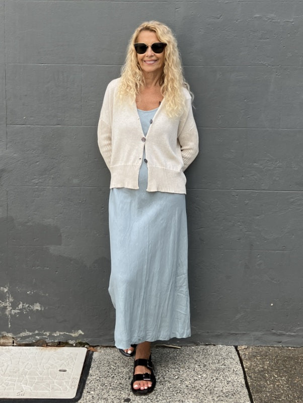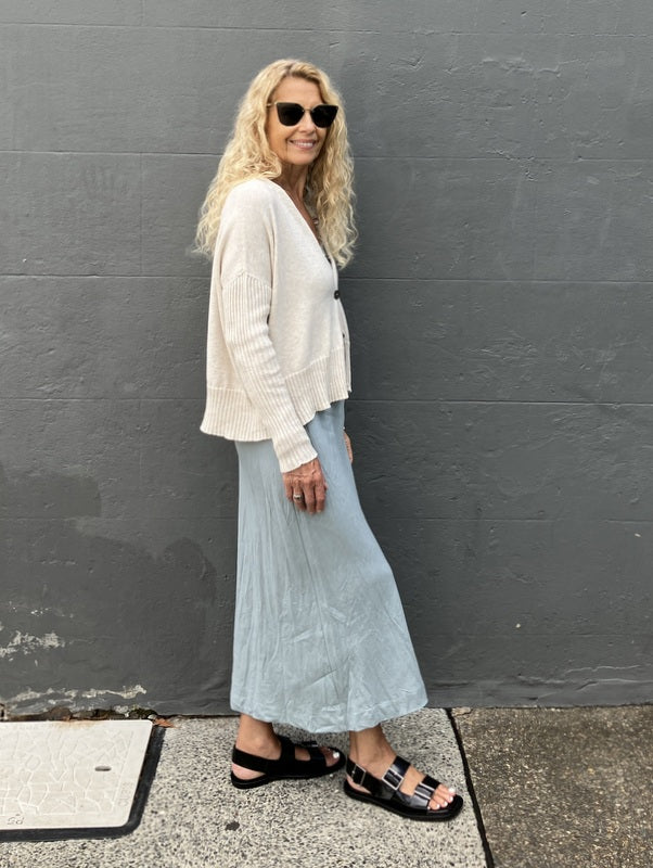 Luna Gallery Rib Sleeve Supima Cotton Cardigan - Ecru