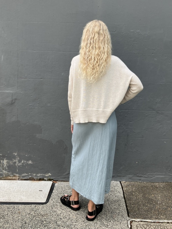 Luna Gallery Cotton Rib Sleeve Boxy Sweater Oyster