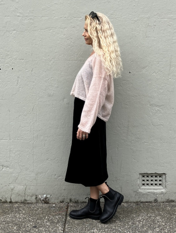 Luna Gallery Sheer MOHAIR Crop V Neck Sweater - Peachy Pink