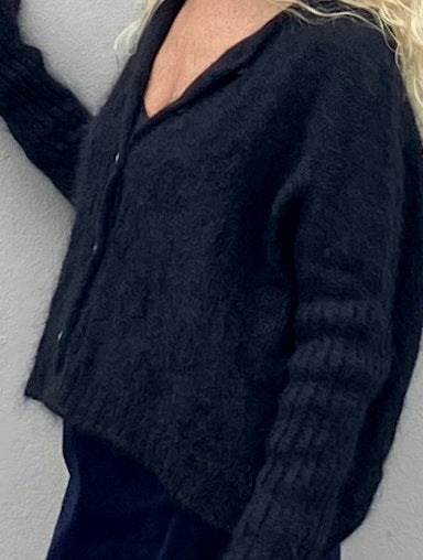 Luna Gallery Mohair/ Wool Diamond Crop Cardigan O/S - Black