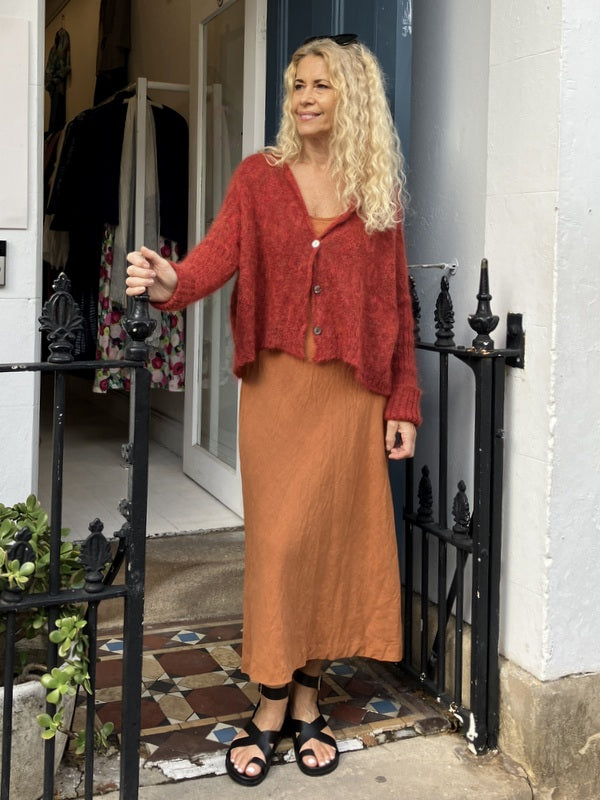 Luna Gallery Mohair/ Wool Diamond Crop Cardigan O/S - Chilli