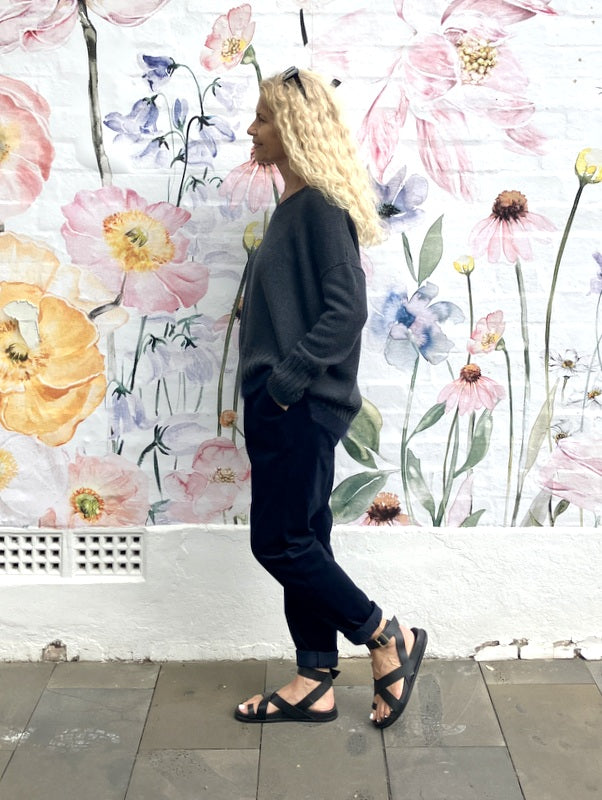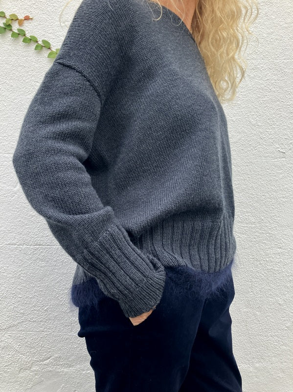 Luna Gallery V- Neck Ribbed Sleeve Jumper w/Mohair Trim - Charcoal