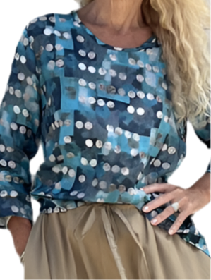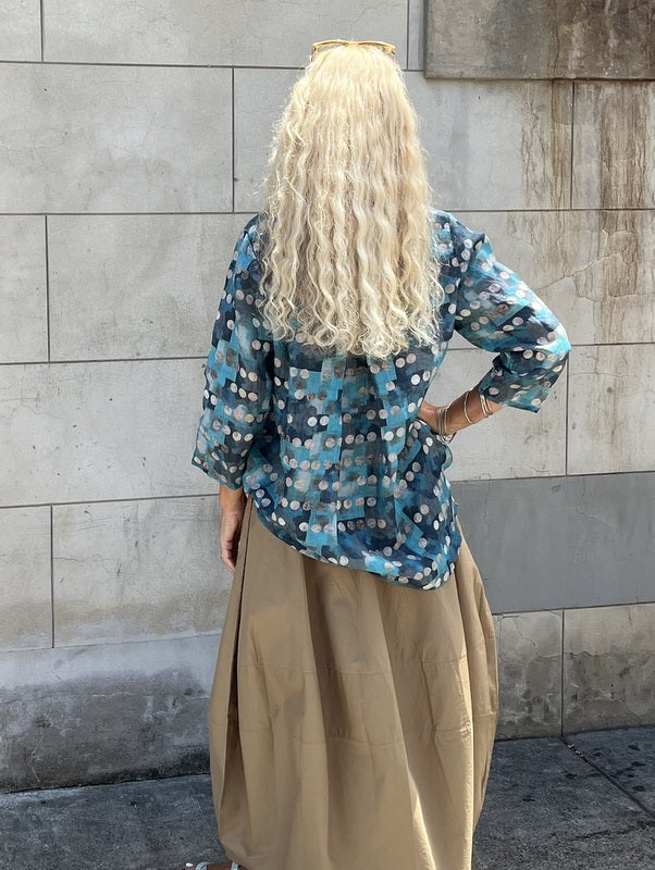 Jiva Maria Shirt - Blue Squares/ Beige Spot Print - Ramie