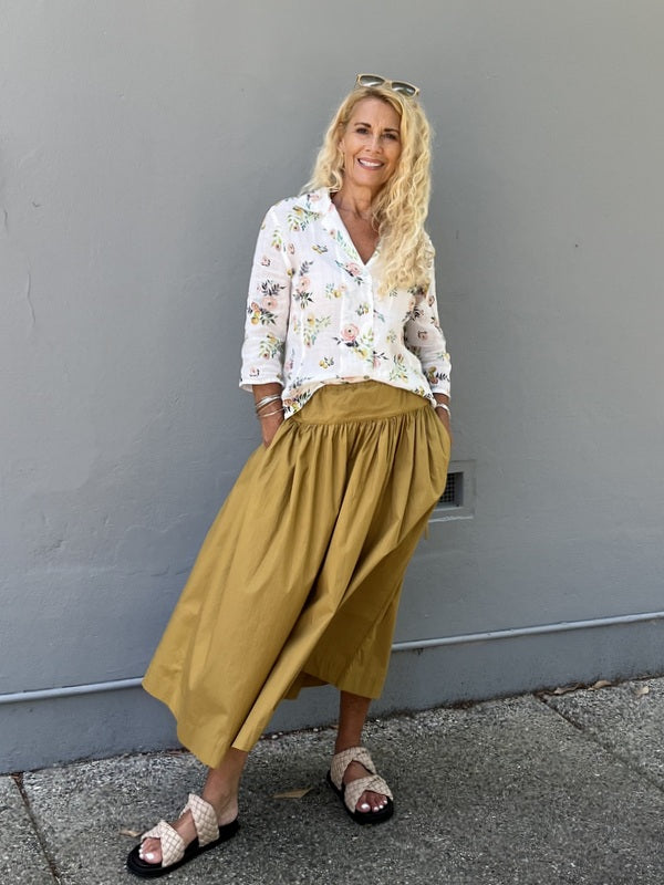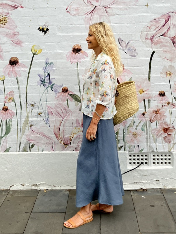 This fabulous fitted shirt is an easy fit button through shirt. Great back with our wide leg or narrow leg Mimi pants or our linen Prudence skirts. Can be worn as a jacket over our linen bias cut slips.