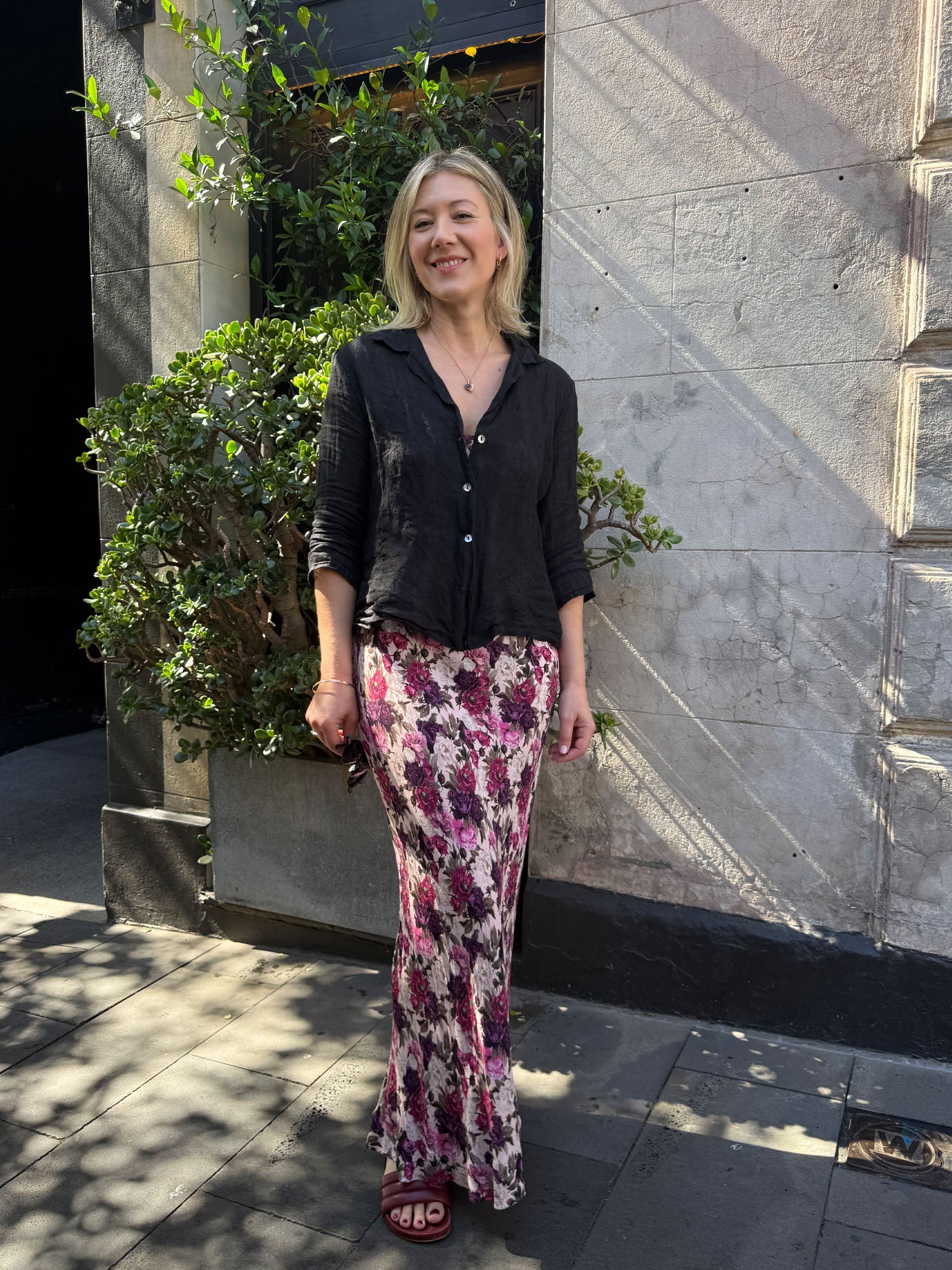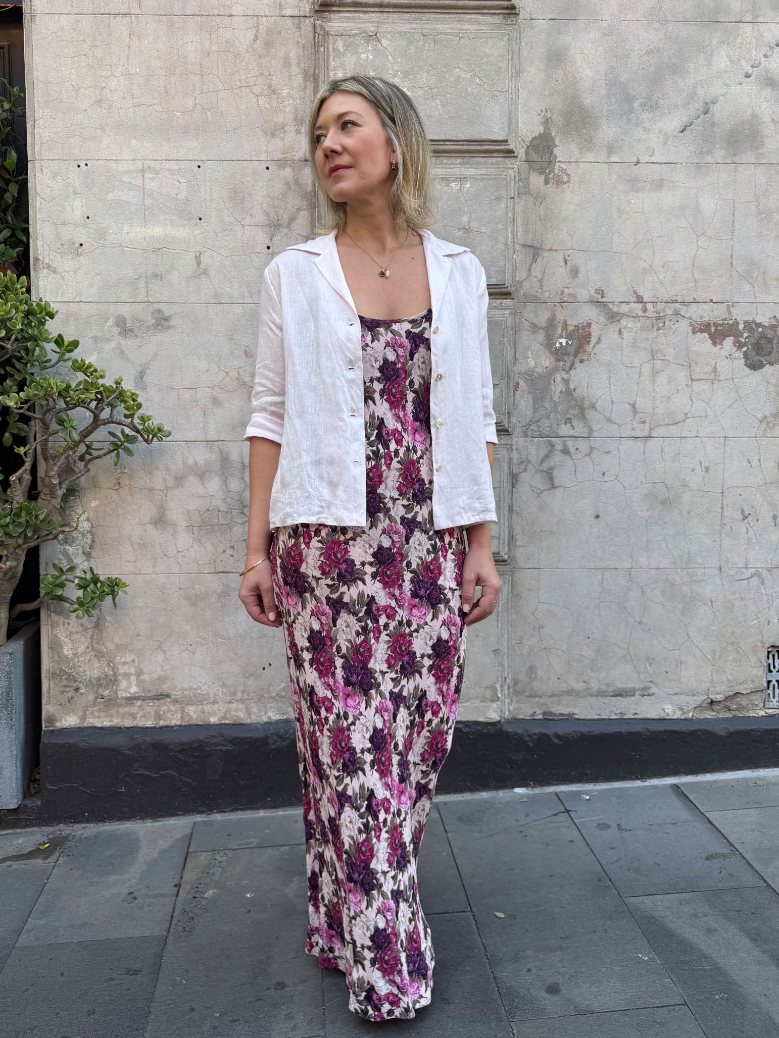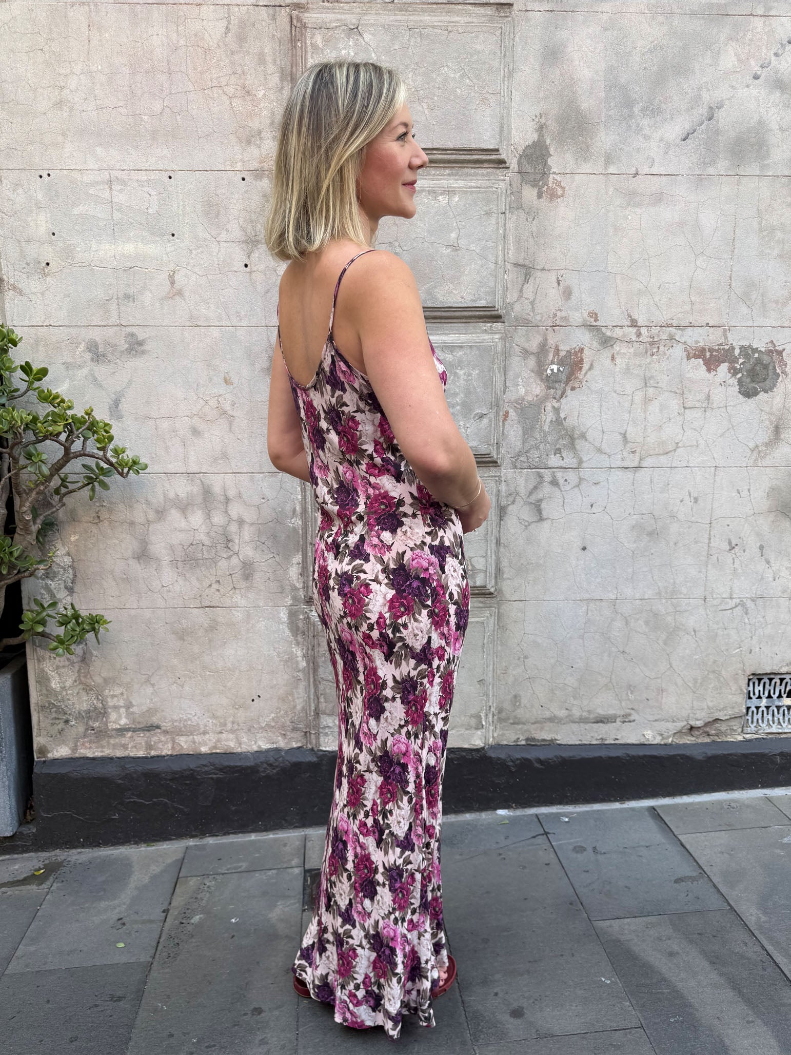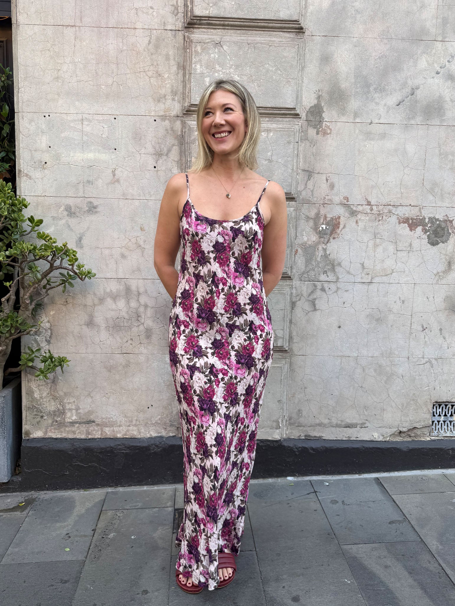 Jiva Crepe Shoestring Slip Dress - Winter Peony Print