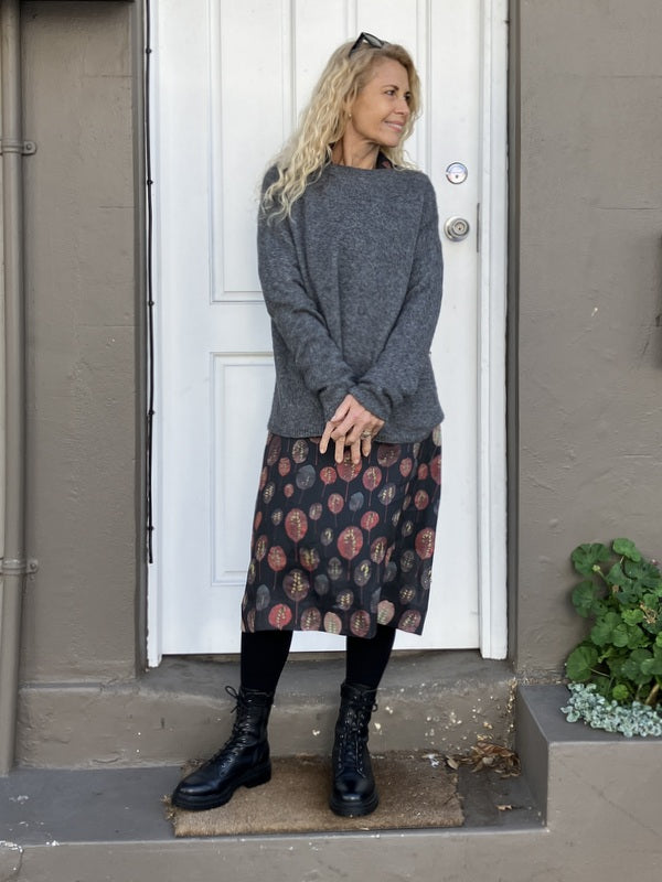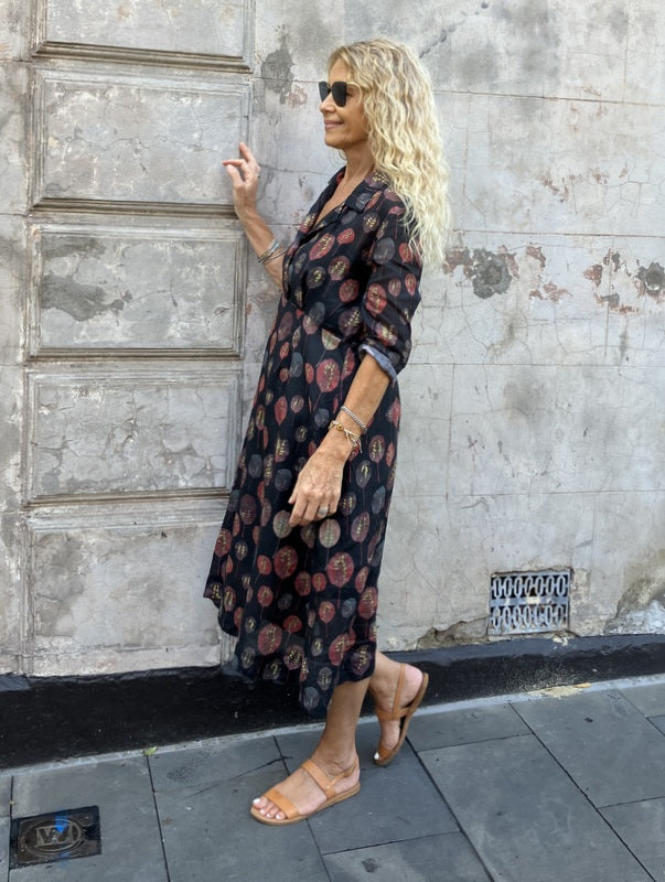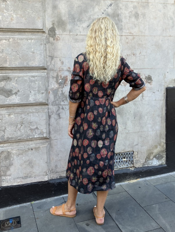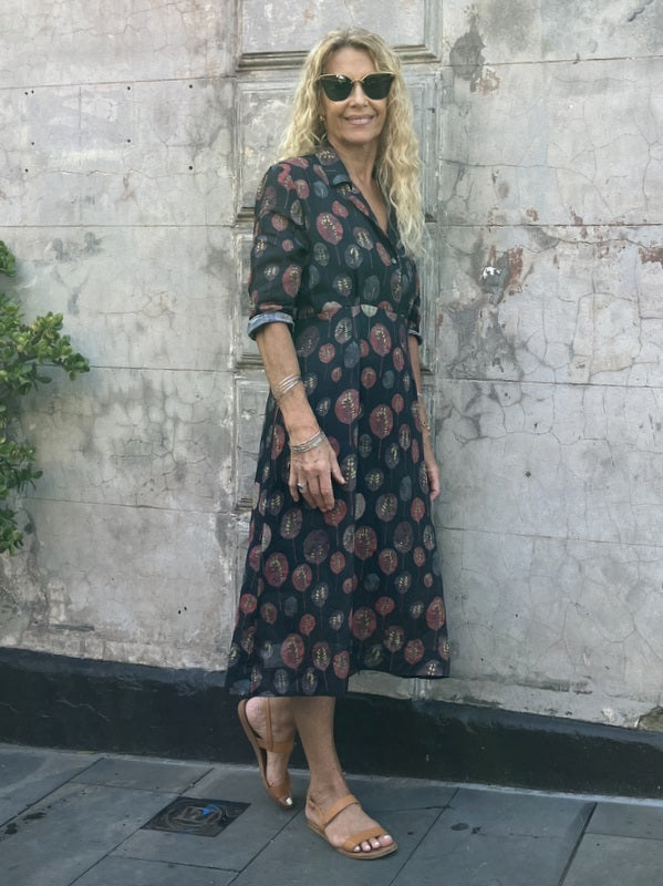 Our 50s dress is a classic, relaxed dress that is easily layered with a cotton slip; add on one of our beautiful linen Catherine coats and is a chic wardrobe outfit. For cooler months layer with a beautiful Luna Gallery knit and a pair of tights.