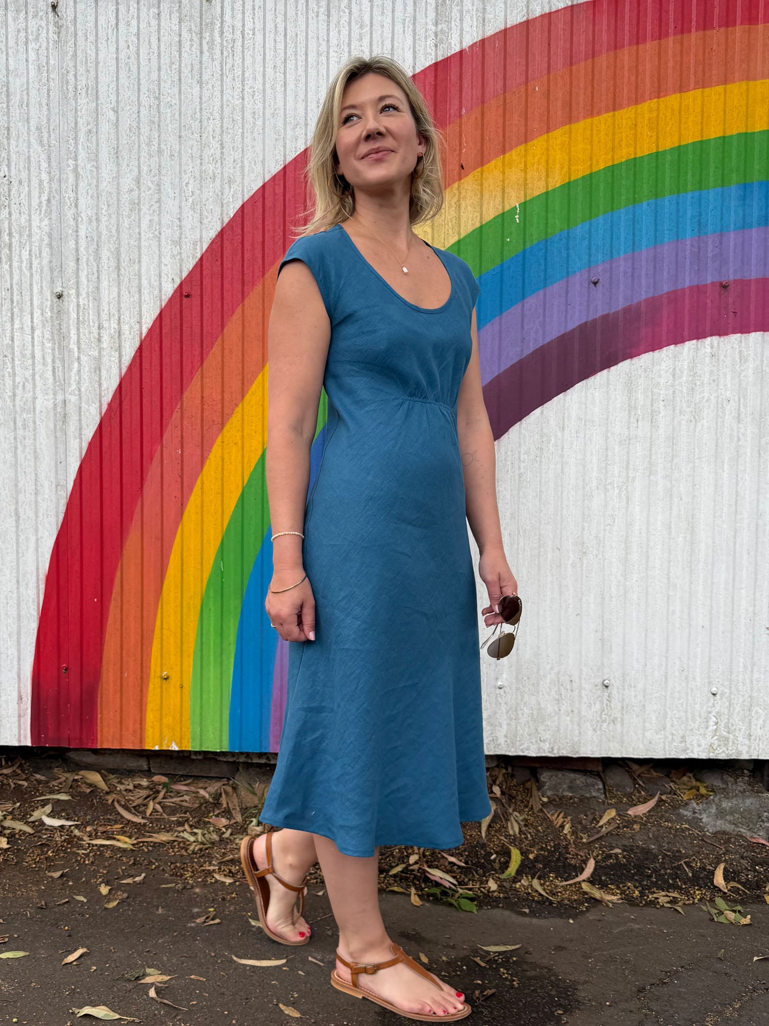Our new bias cut linen Billy-Jo dress is the perfect summer dress to layer with a cardigan or jacket, or gorgeous on its own.
