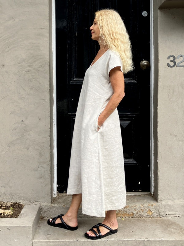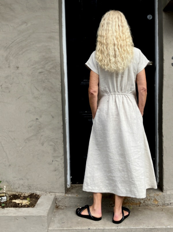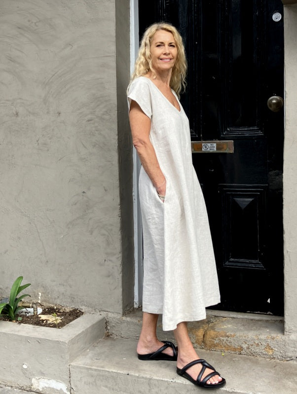 Gorgeous Greta is a relaxed and effortless dress to wear. Can be belted or worn loose. Suits all sizes and shapes because of the detailed elastic back detail to draw in waist line.