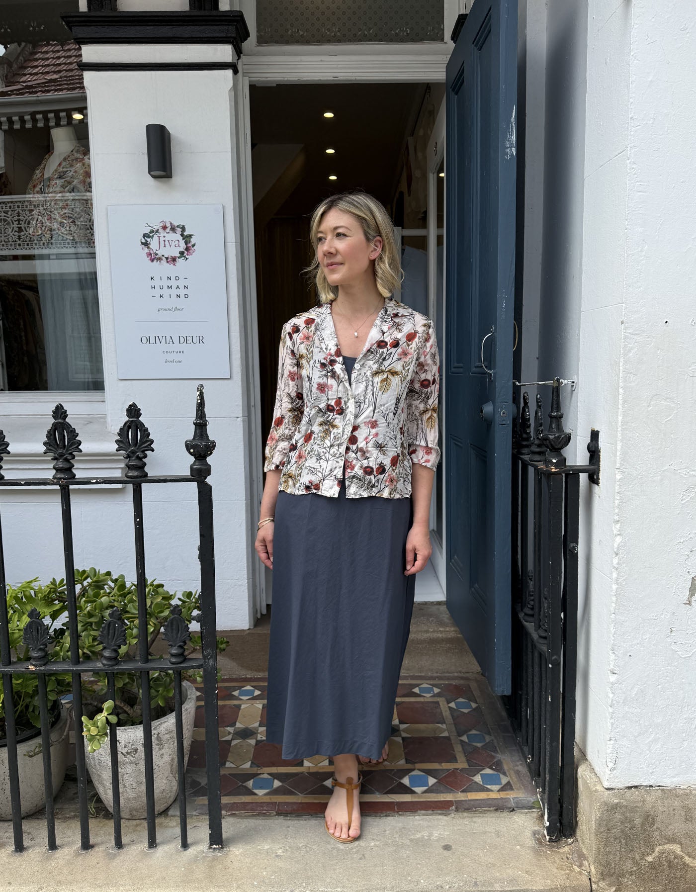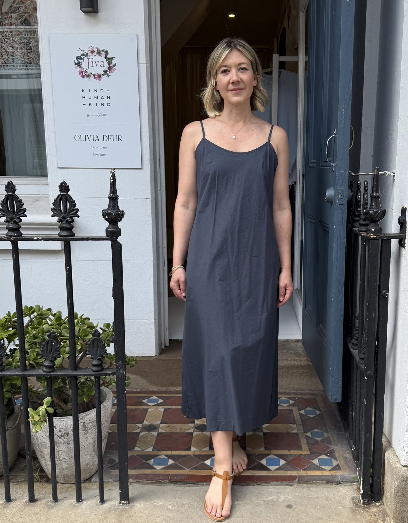 Our new bias cut prima cotton shoestring slip dress is gorgeous on its own. A perfect summer slip to layer with our fitted shirts or Maria tops.