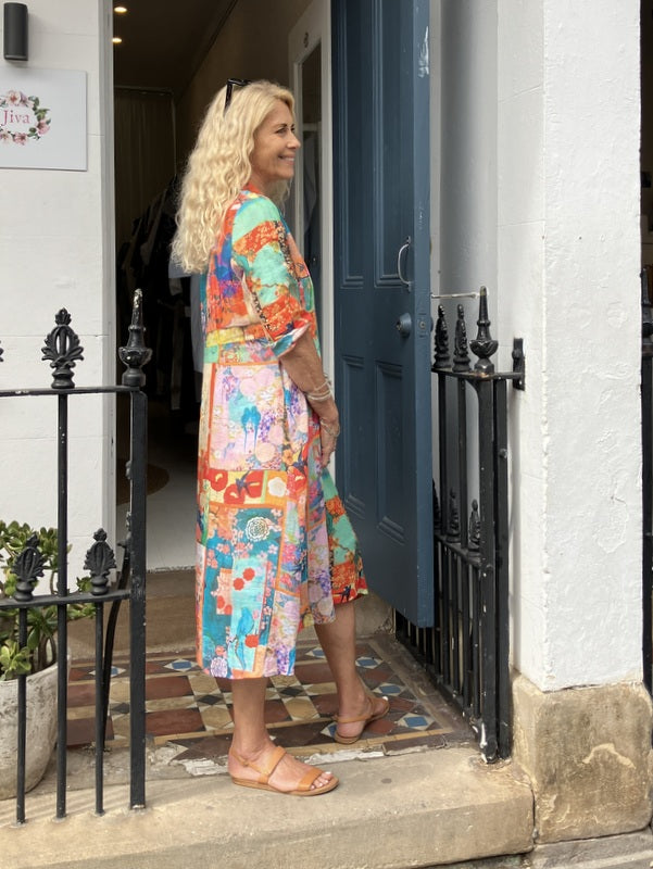 Our 50s dress is a classic, relaxed dress that is easily layered with a cotton slip; add on one of our beautiful linen Catherine coats and is a chic wardrobe outfit. For cooler months layer with a beautiful Luna Gallery knit and a pair of tights.