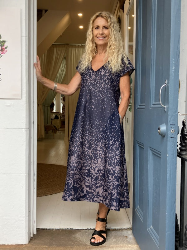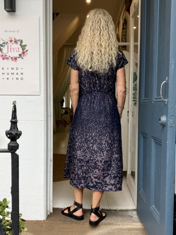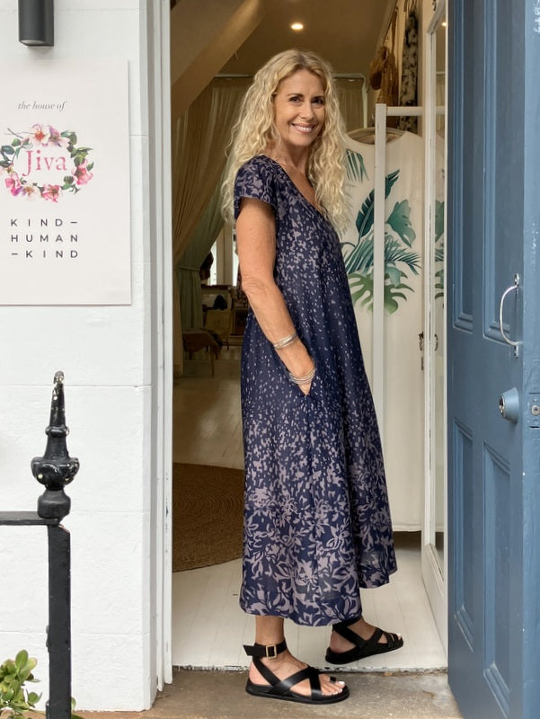 Jiva Cotton Greta Dress - Navy/ Mauve