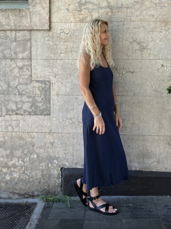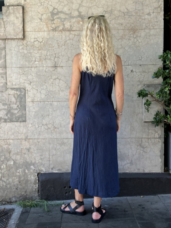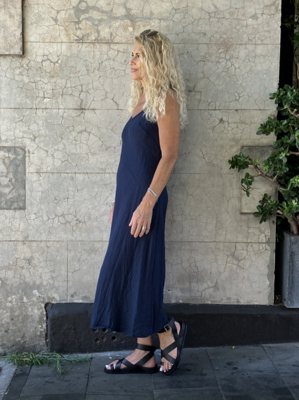 Jiva Antique Wash Linen Shoestring Slip Dress - Navy