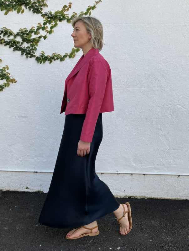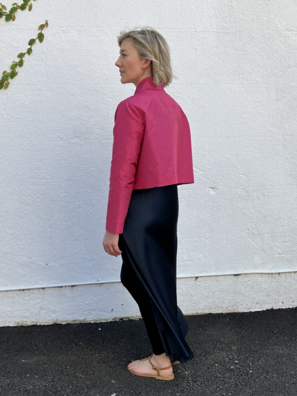 Jiva Light Weight Silk Taffeta Catherine Crop Jacket - Hot Pink