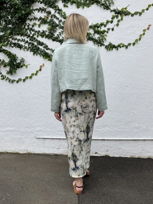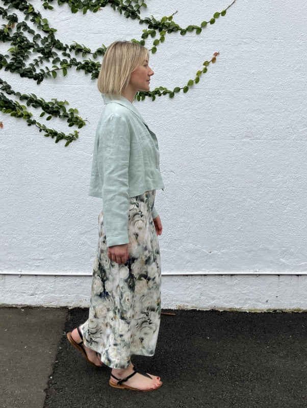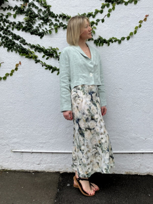 Gorgeous Catherine is an unlined jacket with shawl collar, one shell button. Wear back over our bias cut a slip dress.