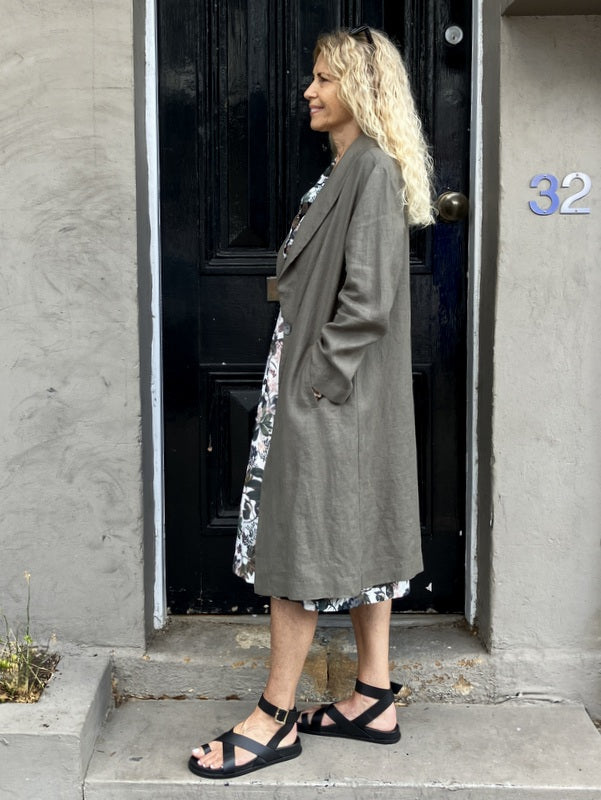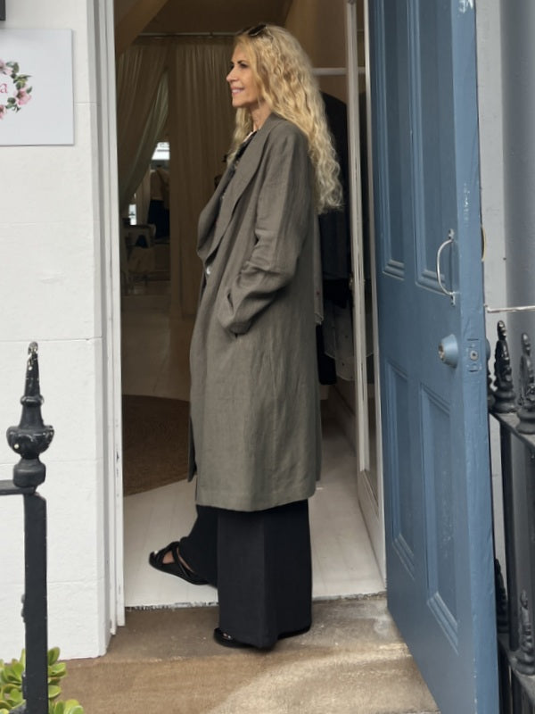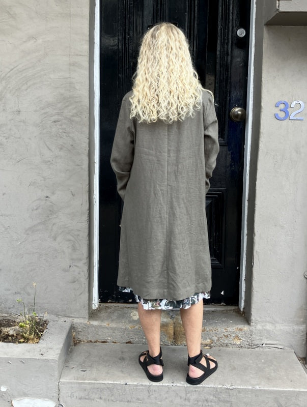Jiva Antique Wash Linen Catherine Coat - Olive