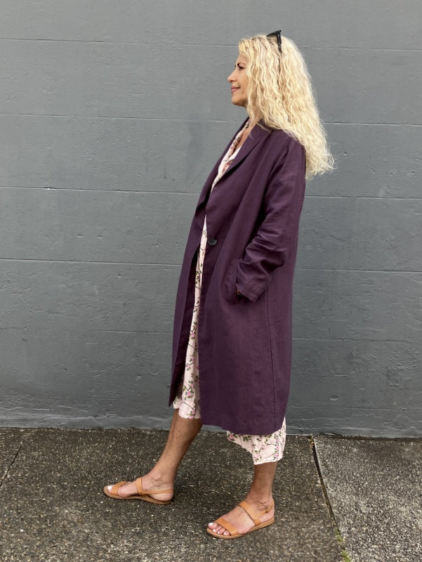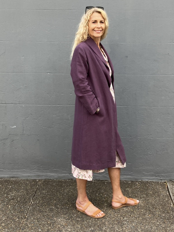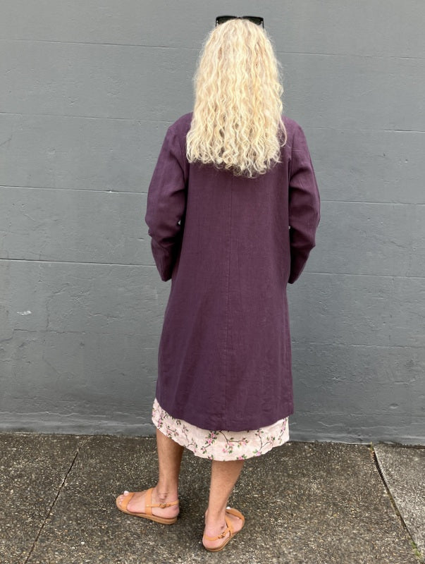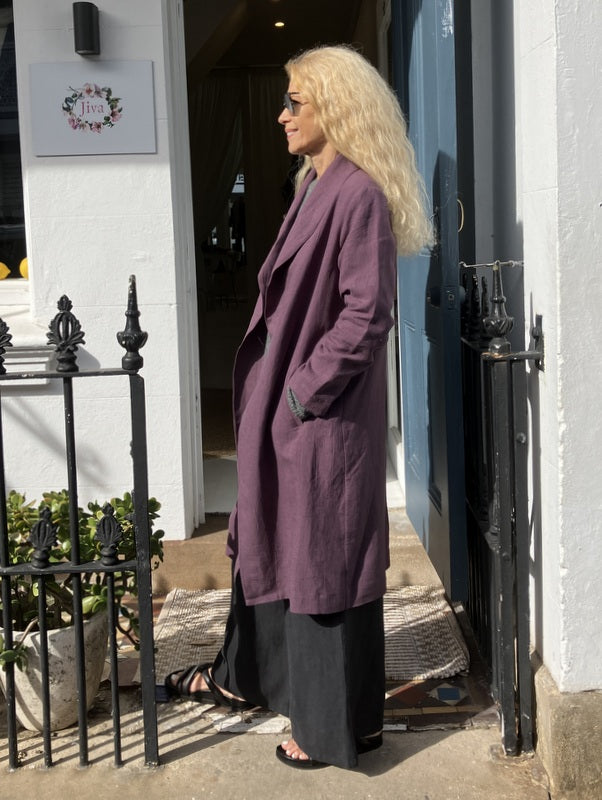 Jiva Antique Wash Linen Catherine Coat - Raisin
