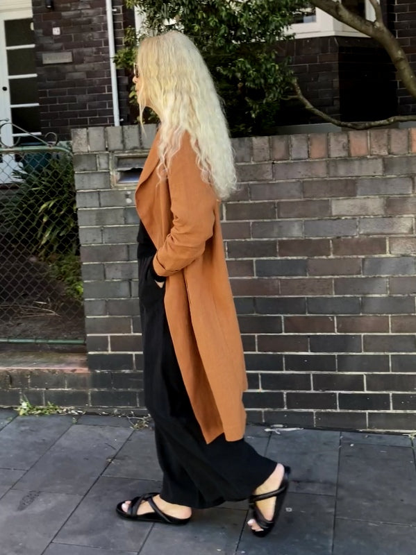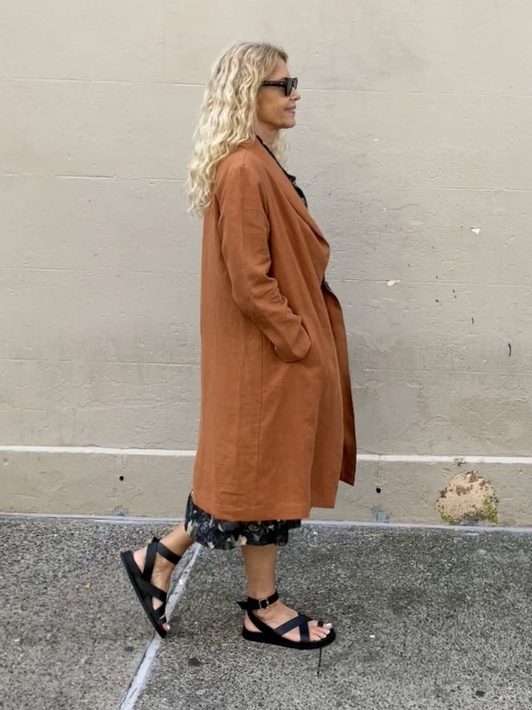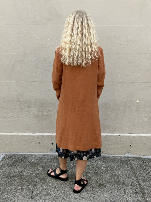 Jiva Antique Wash Linen Catherine Coat - Rust