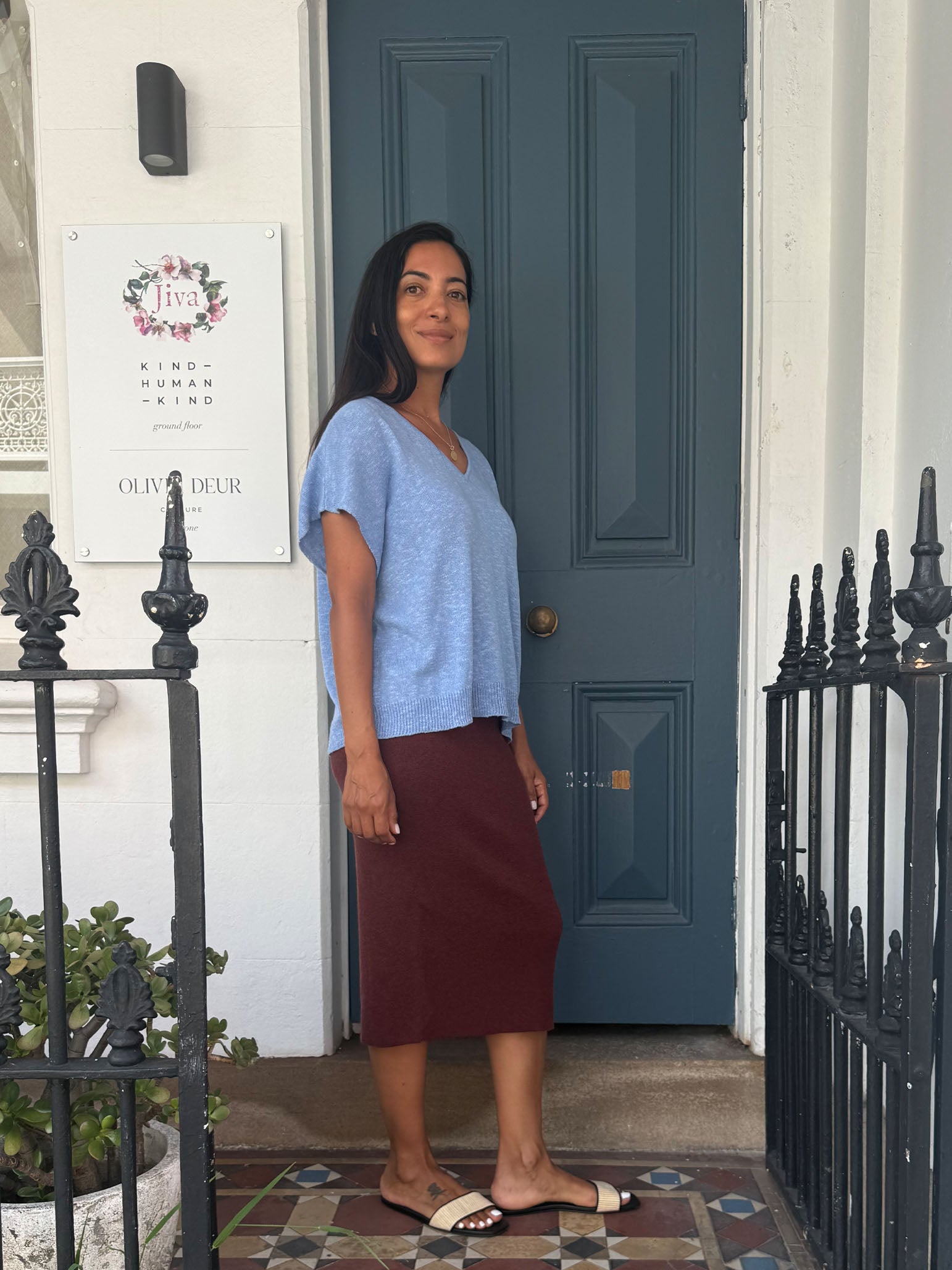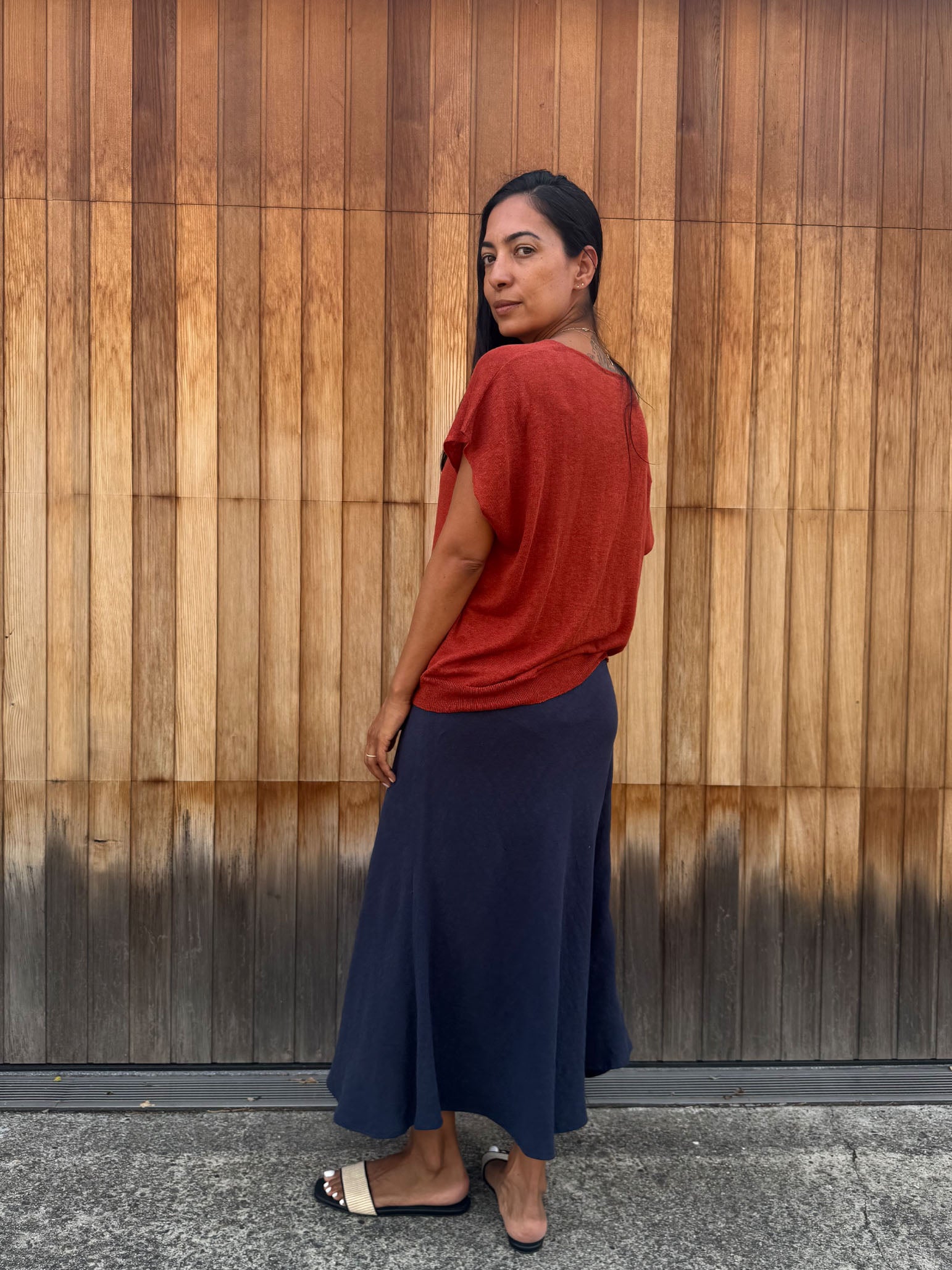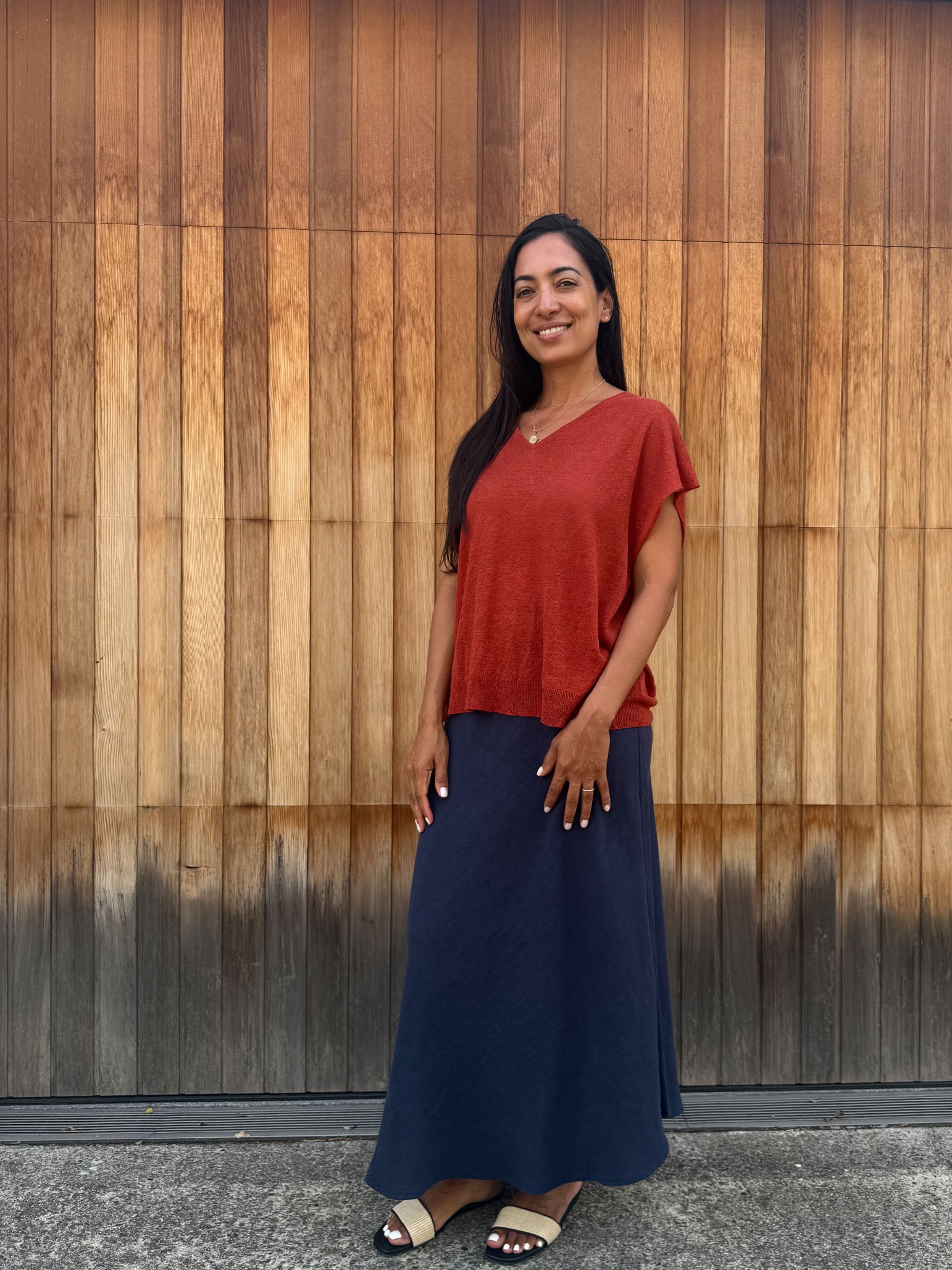 Kind-Human-Kind - Miuccia Long Linen Knit Skirt - Chestnut