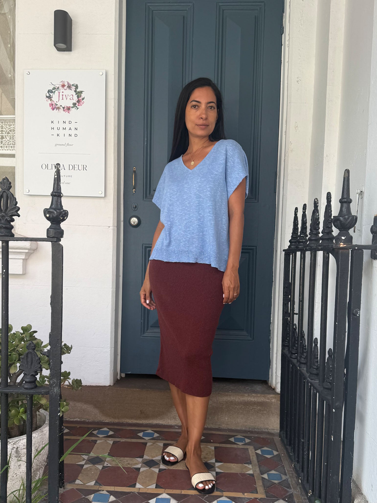Carioca is a soft Cotton/Linen/Silk blend V-neck knit top, stylish and chic.