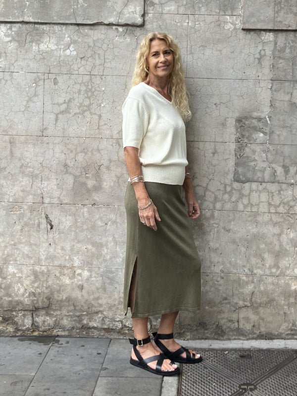 Kind-Human-Kind - Gaby Silk V-Neck Short Sleeve Knit - Chalk