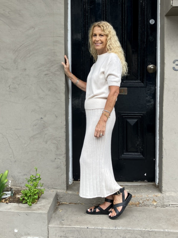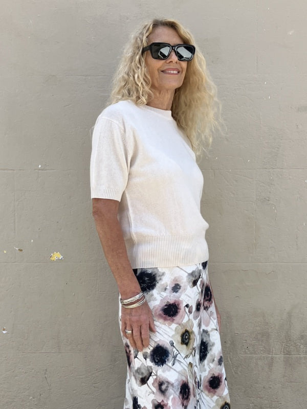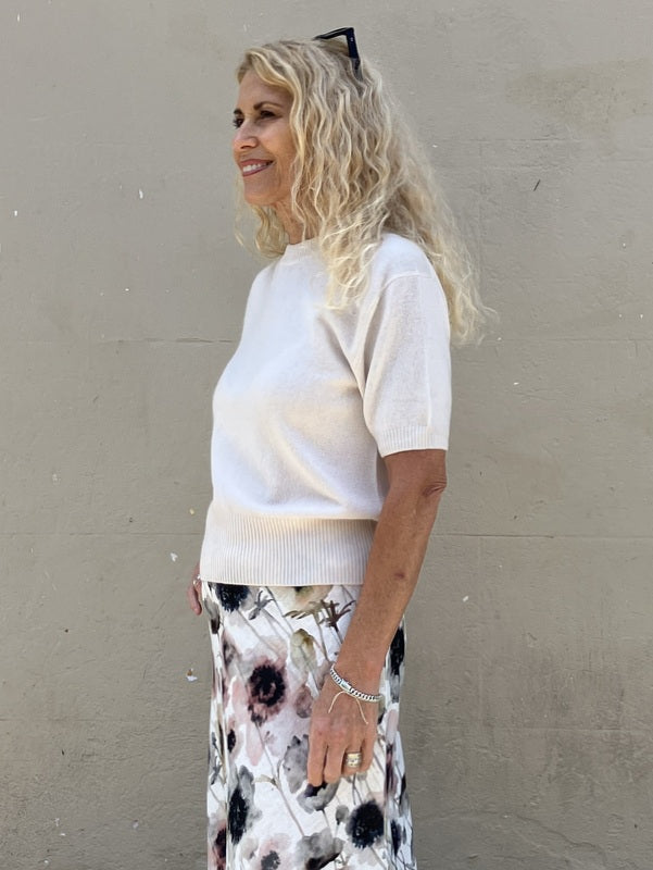Kind-Human-Kind - Rosa Cashmere Blend Short Sleeve Top - Linen