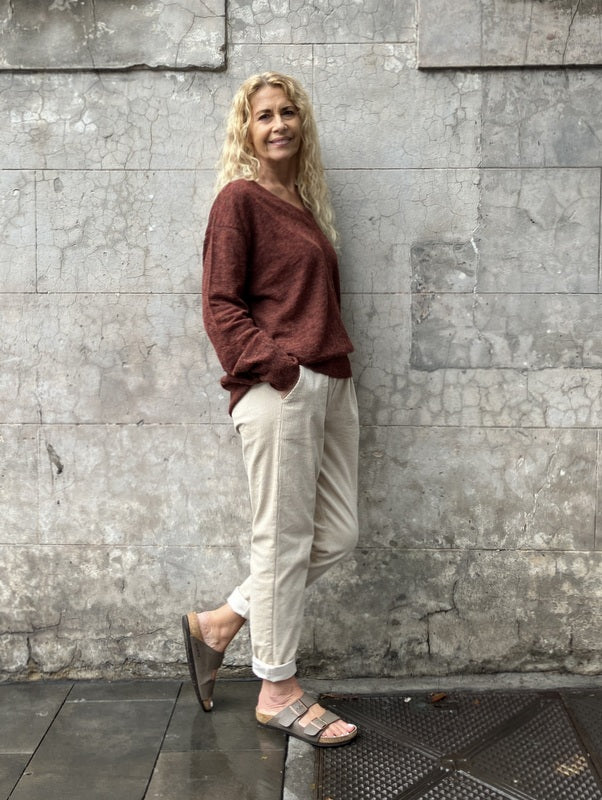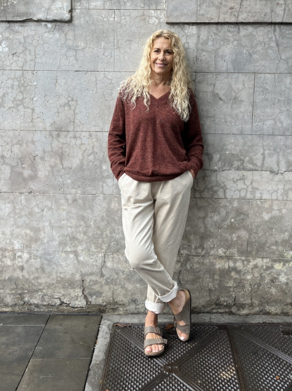 Kind-Human-Kind - Maya V- Neck Relaxed Jumper - Harissa