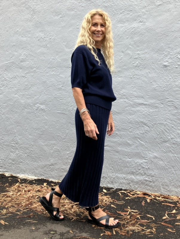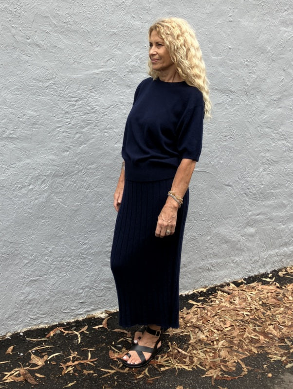 Kind-Human-Kind - Rosa Cashmere Blend Short Sleeve Top - Navy