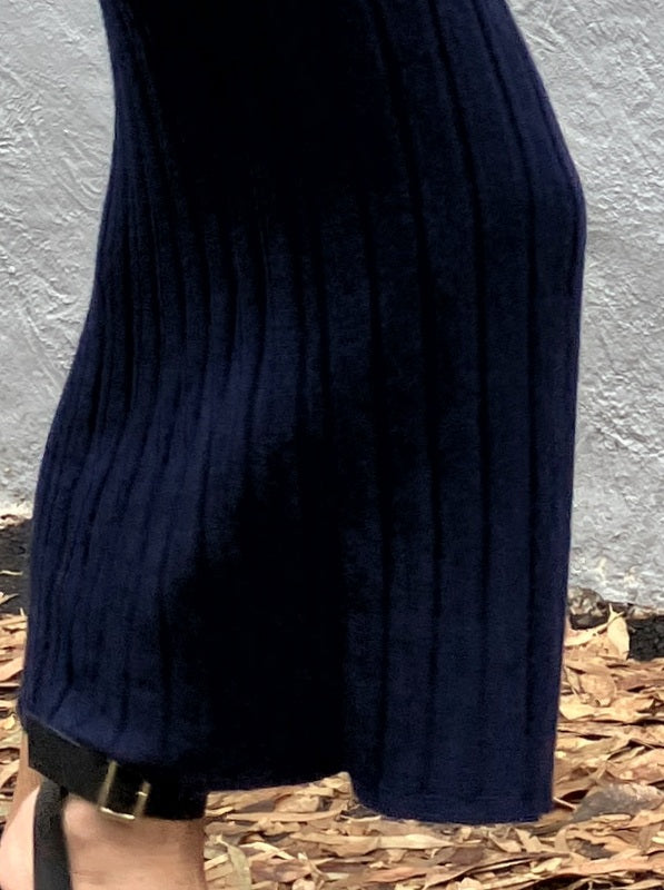 Kind-Human-Kind Tsai Wool/ Cashmere Wide Ribbed Knit Skirt - Navy