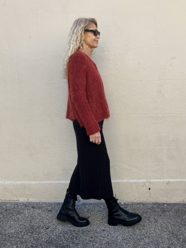 Kind- Human-Kind Tsai Wool/ Cashmere Wide Ribbed Knit Skirt - Ebony