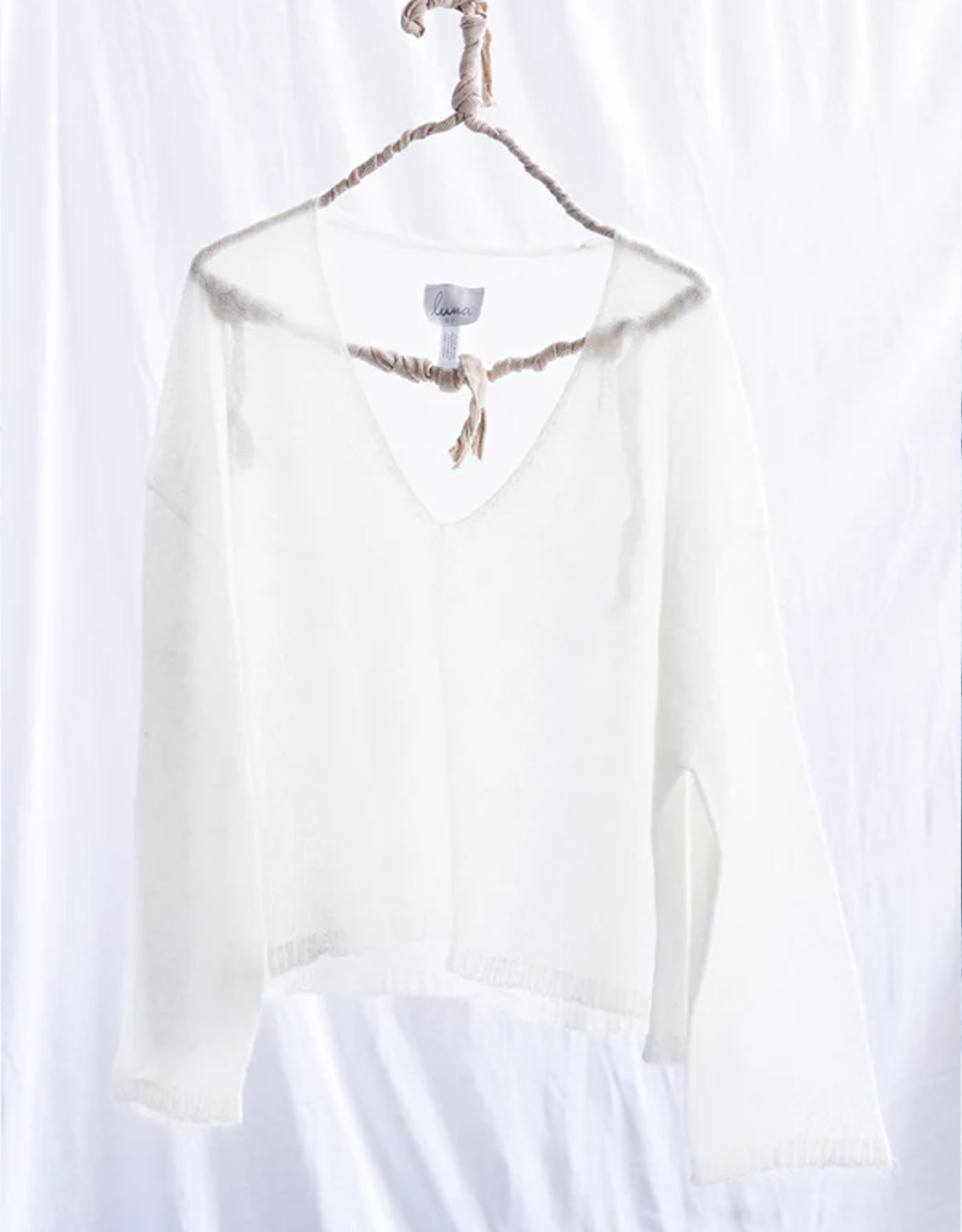 Luna Gallery Sheer MOHAIR Crop V Neck Sweater - Froth