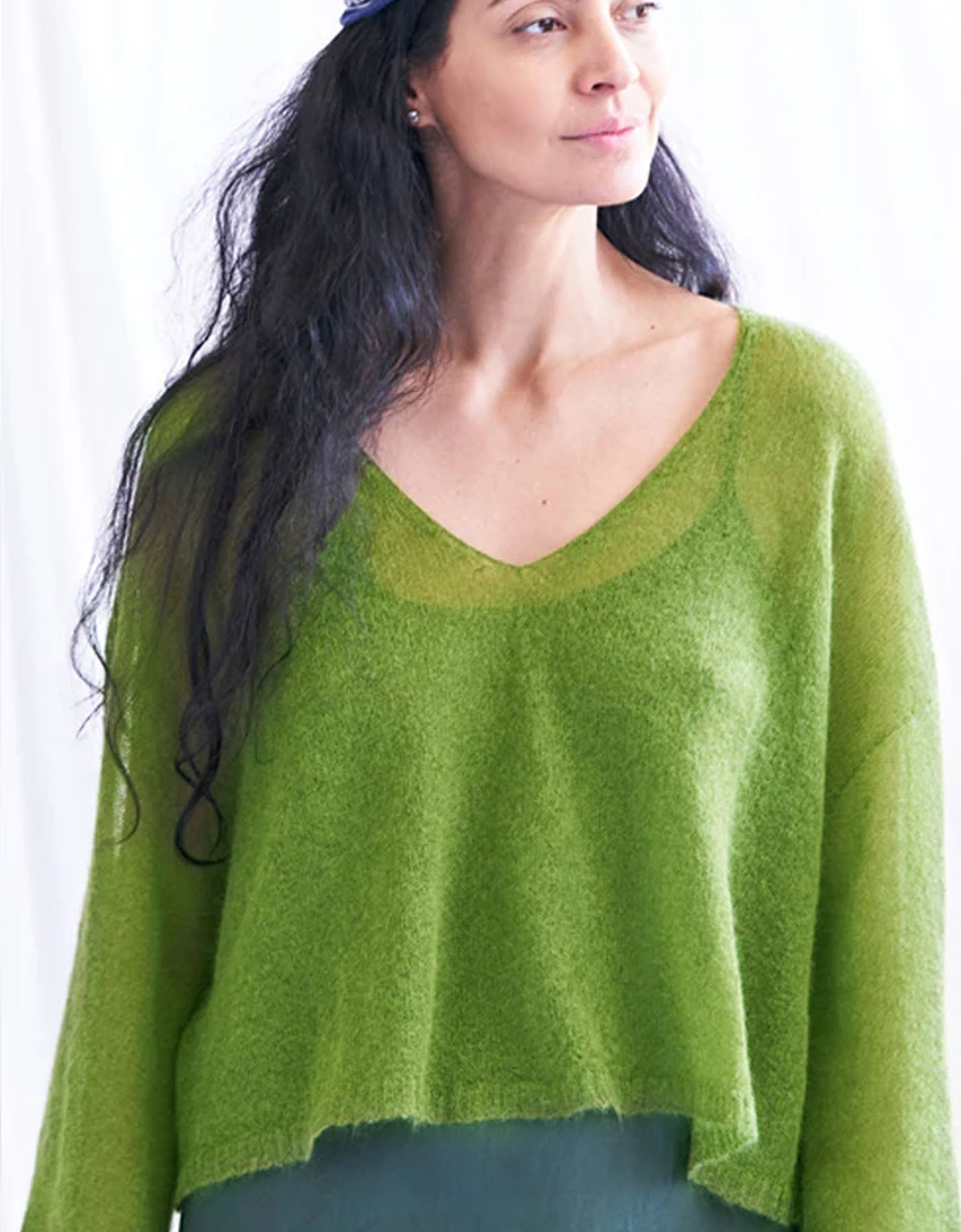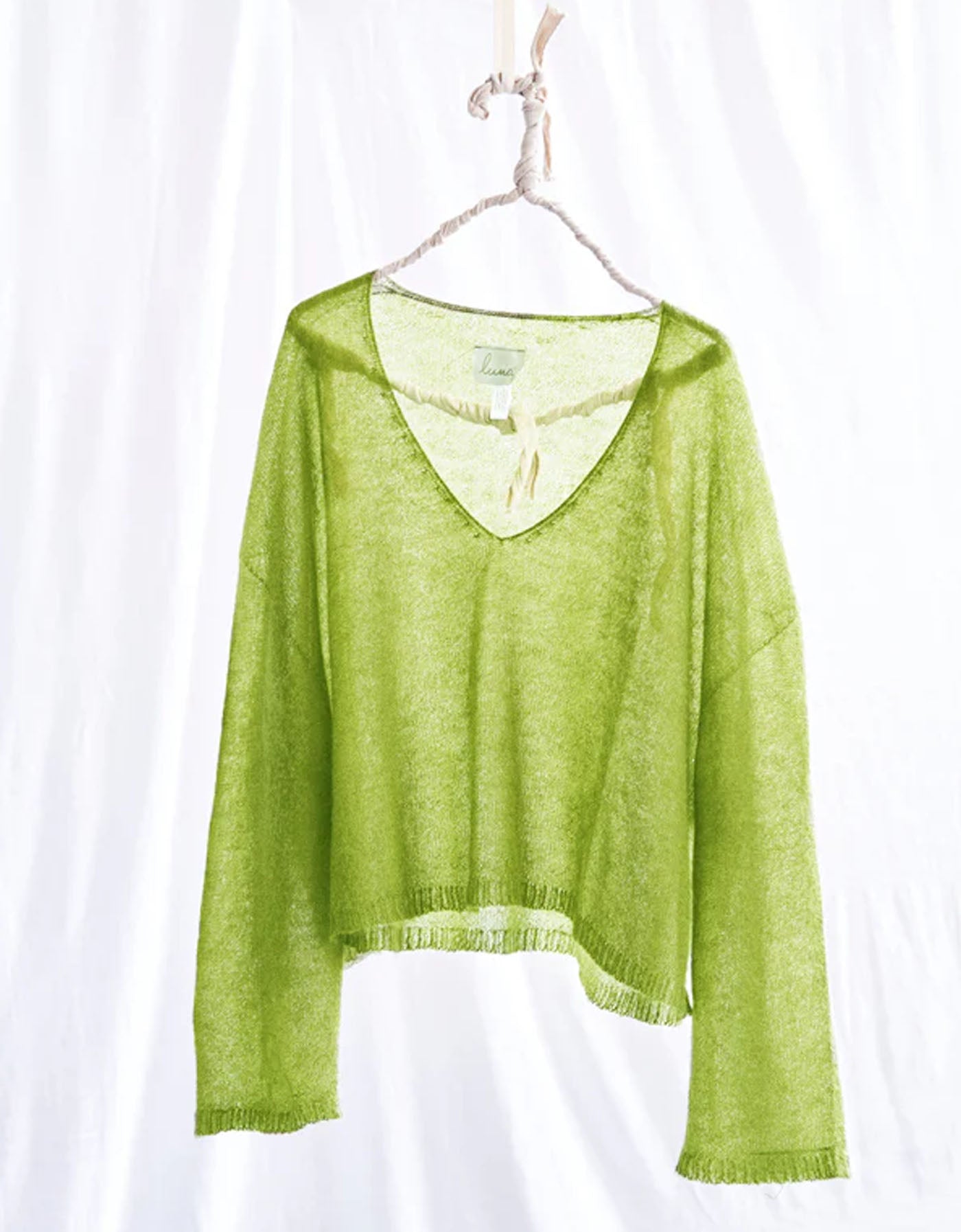 Luna Gallery Sheer MOHAIR Crop V Neck Sweater - Lime