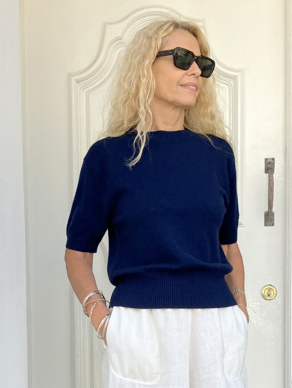 Kind-Human-Kind - Rosa Cashmere Blend Short Sleeve Top - Navy