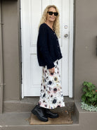 Merino & Mohair crop cardigan with subtle diamond pattern through the body to add a little texture. 5 shell buttons & lovely long rib sleeves.