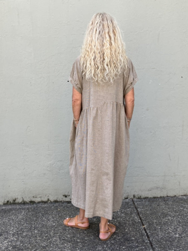 Loom Lifestyle Handloomed Cotton Asymmetrical Dress - Toffee
