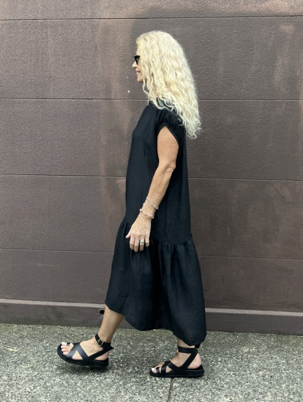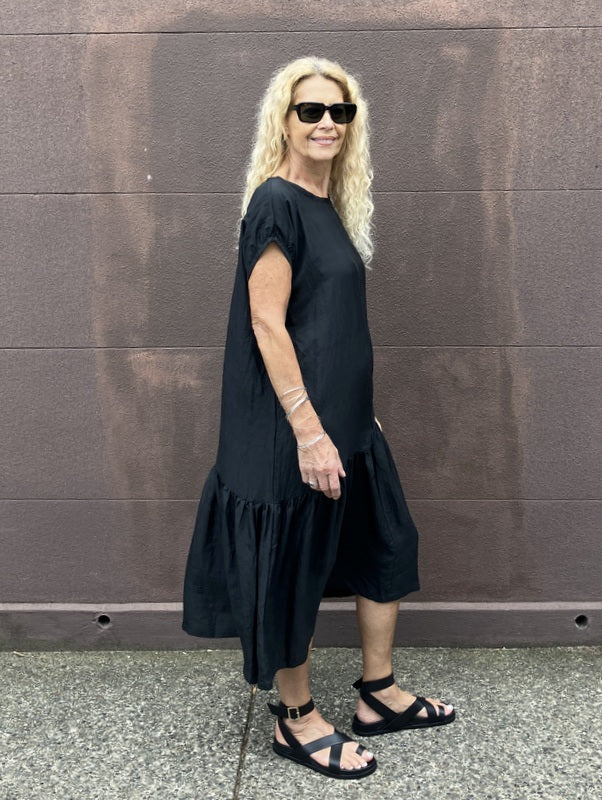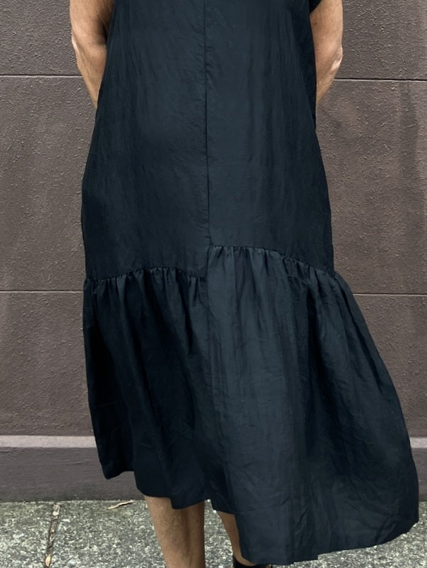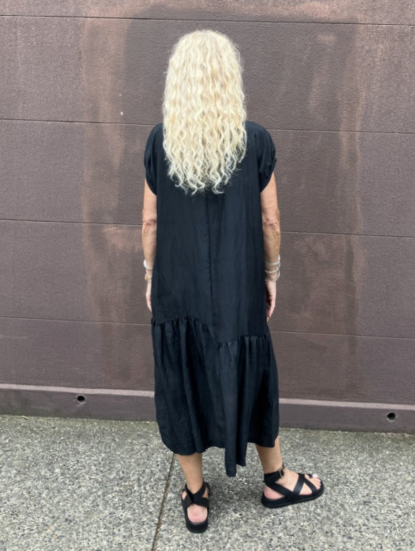 Loom Lifestyle Handloomed Asymmetrical Silk Dress - Black