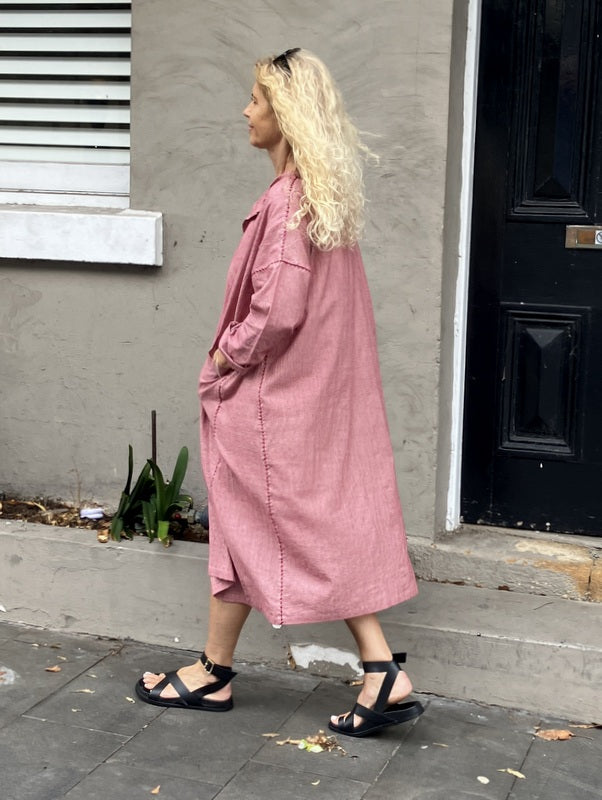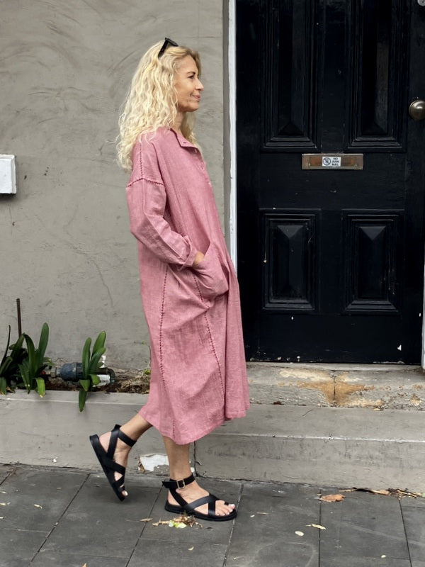 Loom Lifestyle Handloomed Cotton Shirt Dress - Rose
