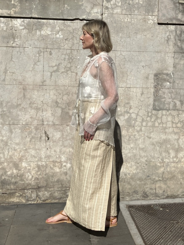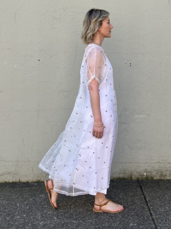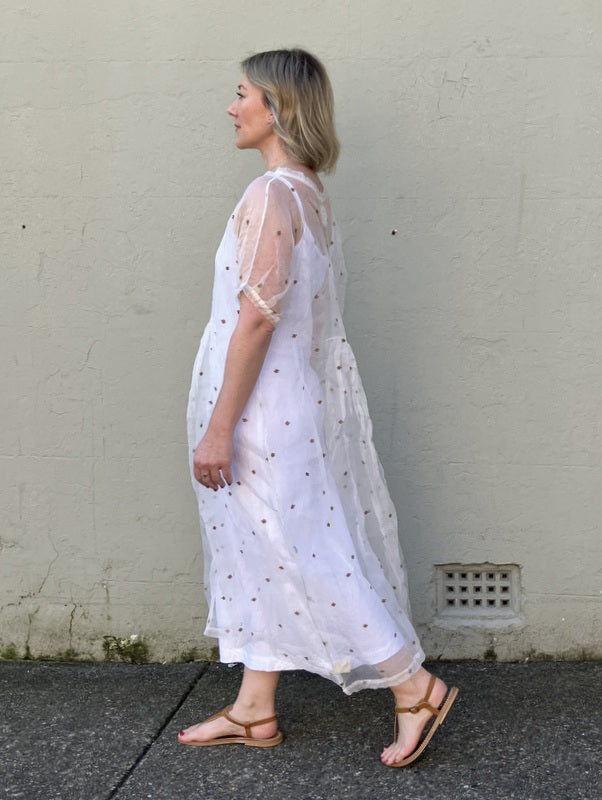 Loom LifeStyle Silk Organza + Jamdani Dress - Khaki Cross