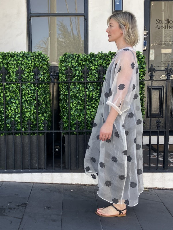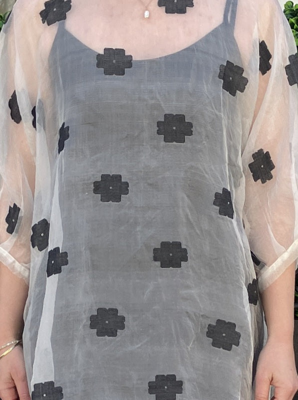 Loom LifeStyle Silk Organza + Jamdani Loose Dress - Black Flower