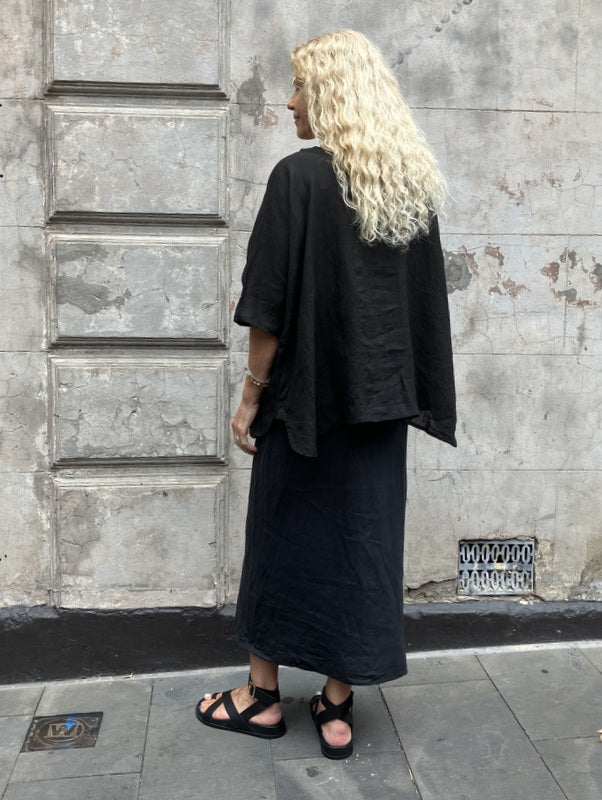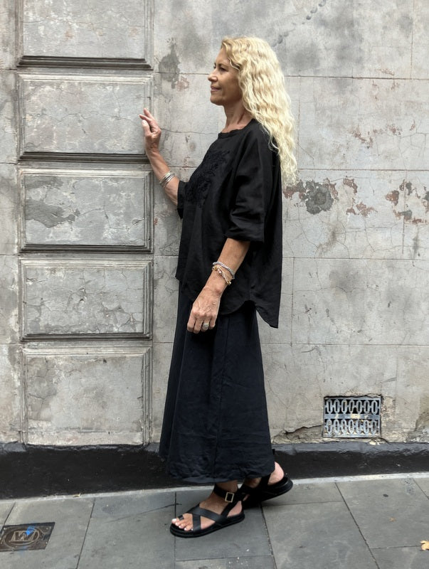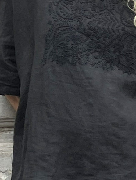Loom Lifestyle Hand Loomed Linen Embroidered Top - Black