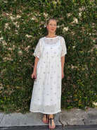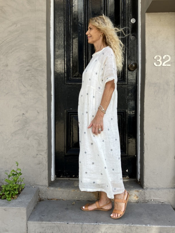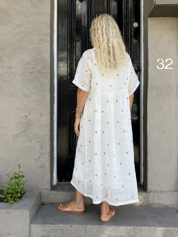 Loom Lifestyle Handloomed Linen Dress - Ivory/ Black Spot