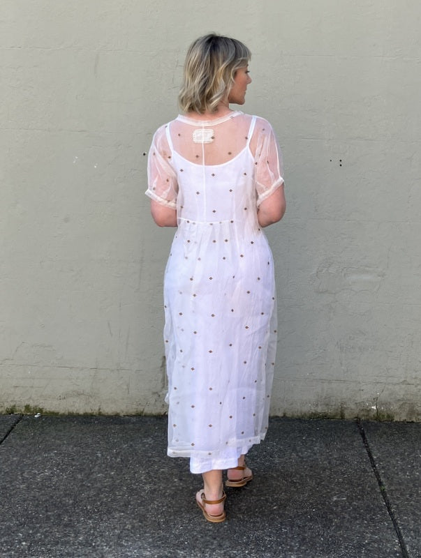 Loom LifeStyle Silk Organza + Jamdani Dress - Khaki Cross
