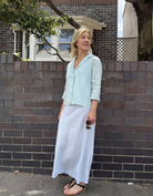 This fabulous fitted shirt is an easy fit button through shirt. Great back with our wide leg or narrow leg Mimi pants or our linen Prudence skirts. Can be worn as a jacket over our linen bias cut slips.