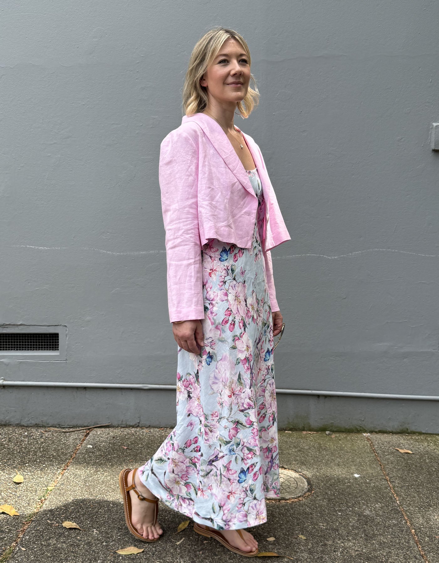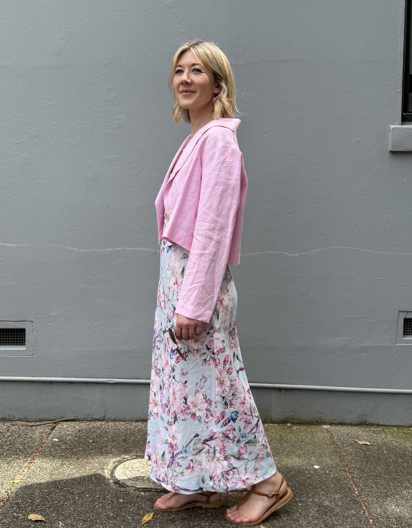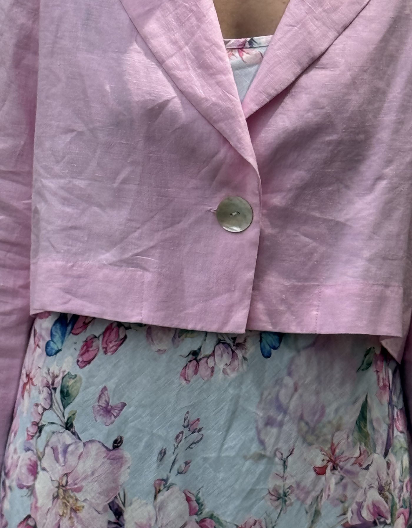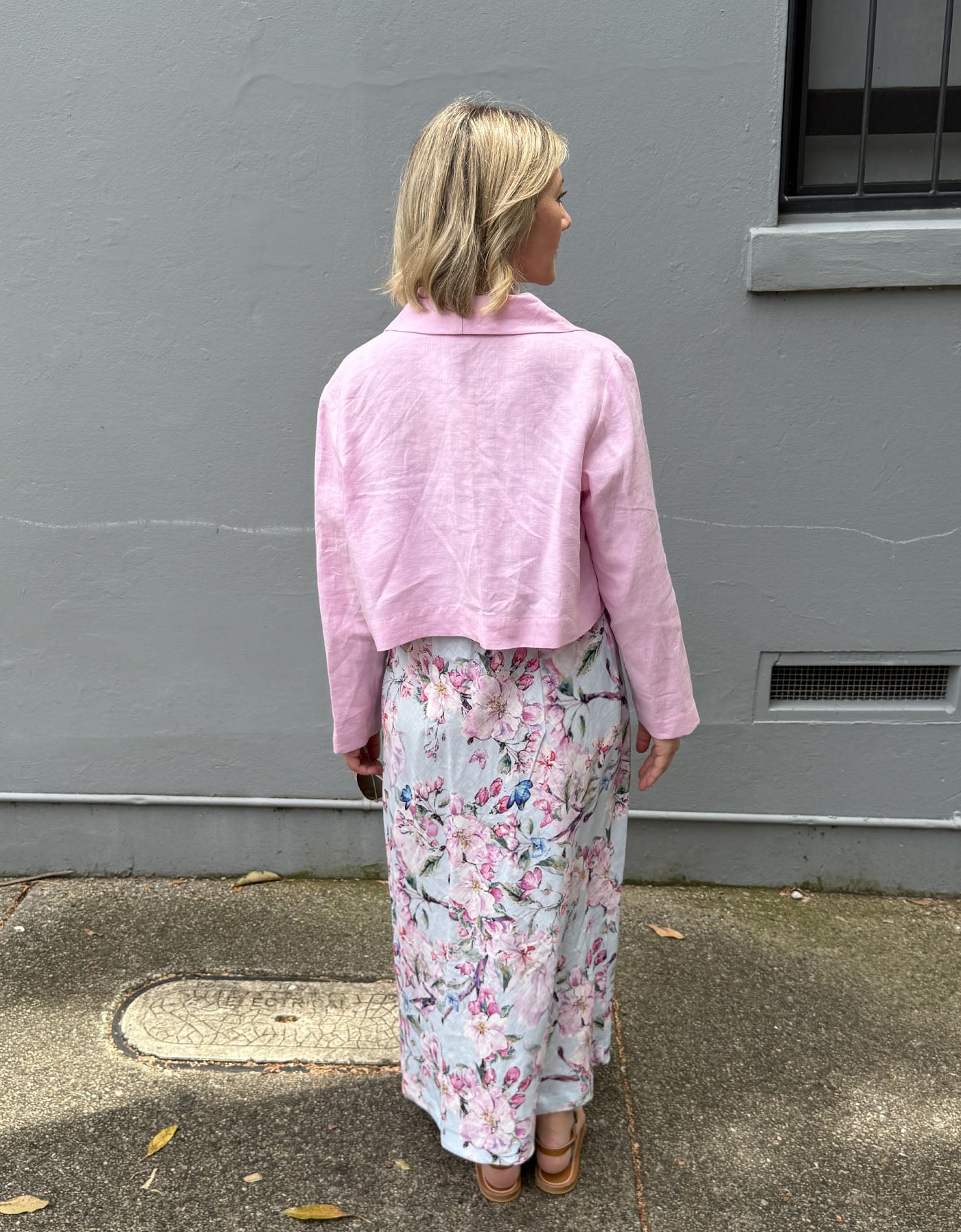 Jiva Linen Catherine Crop Jacket - Hibiscus Rosa