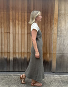 Jiva Linen Shoestring Slip Dress - Olive