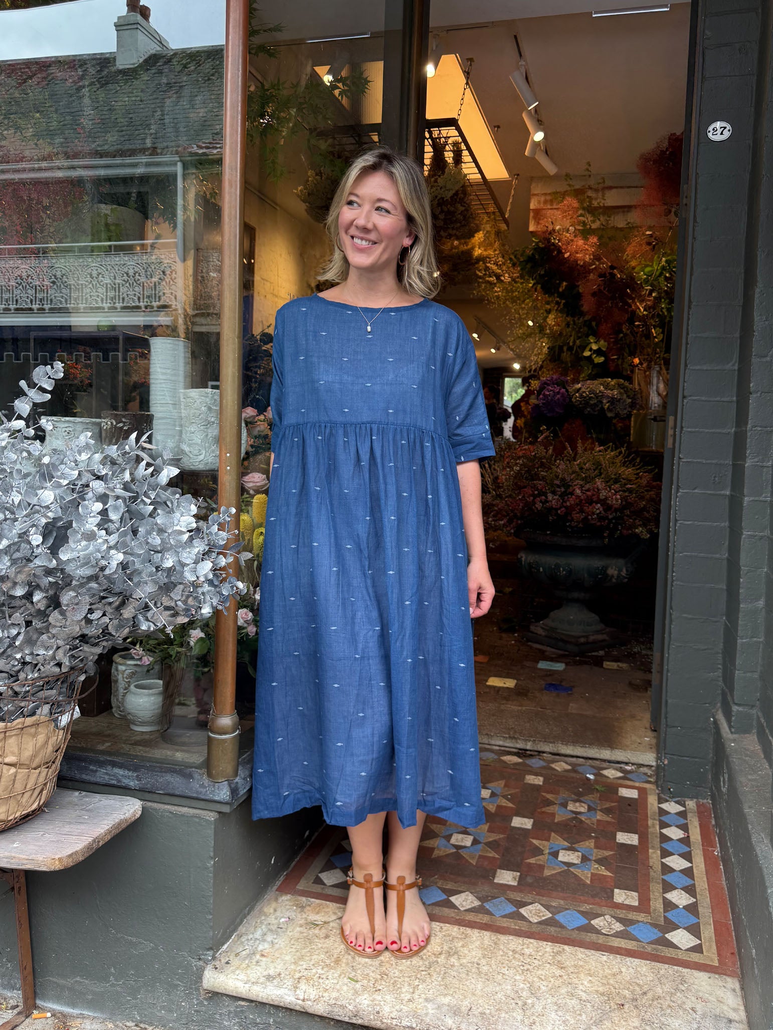 Loom LifeStyle Cotton + Jamdani Dress - Indigo